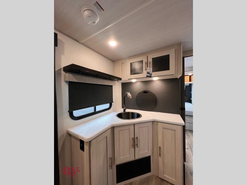 The Forest River Un-Mapped travel trailers deliver an unparalleled travel experience thanks to their incredible features, starting with the aluminum-framed floor with block foam insulation that ensures exceptional structural integrity and thermal efficiency, along with the sealed underbelly with forced heat & radiant foil barrier that provides superior insulation and heat management, and the power tongue jack facilitates easy maneuvering and stabilization of the trailer. Plus, the 30 Amp charge controller with solar inverter prep is ready for integration with solar power systems, catering to eco-conscious travelers seeking off-grid capabilities. Inside, you will find seamless Surf-X kitchen countertops that offer a sleek, durable surface and are easy to maintain for busy travelers. Further, the blackout roller shades will add privacy and light control for restful nights and cozy daytime retreats.