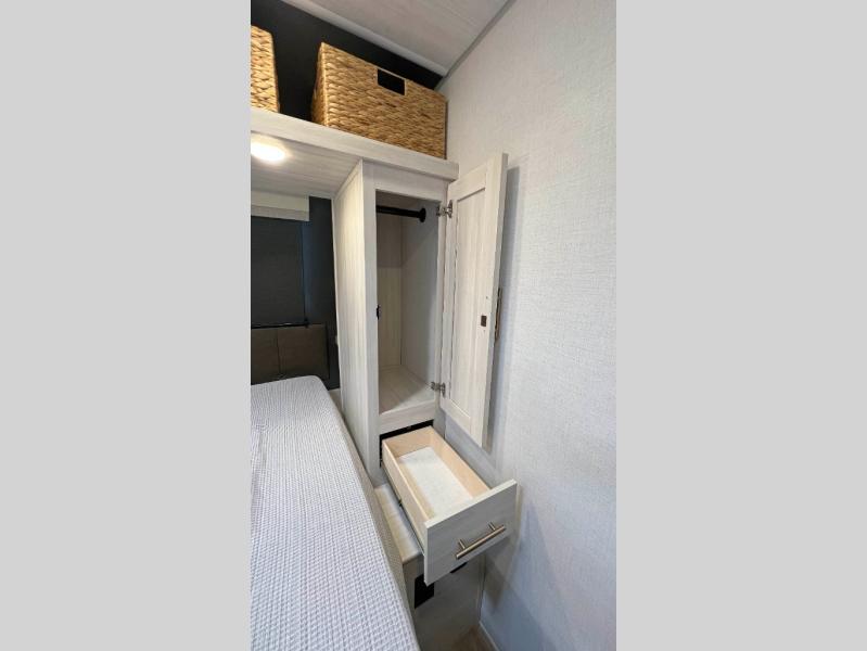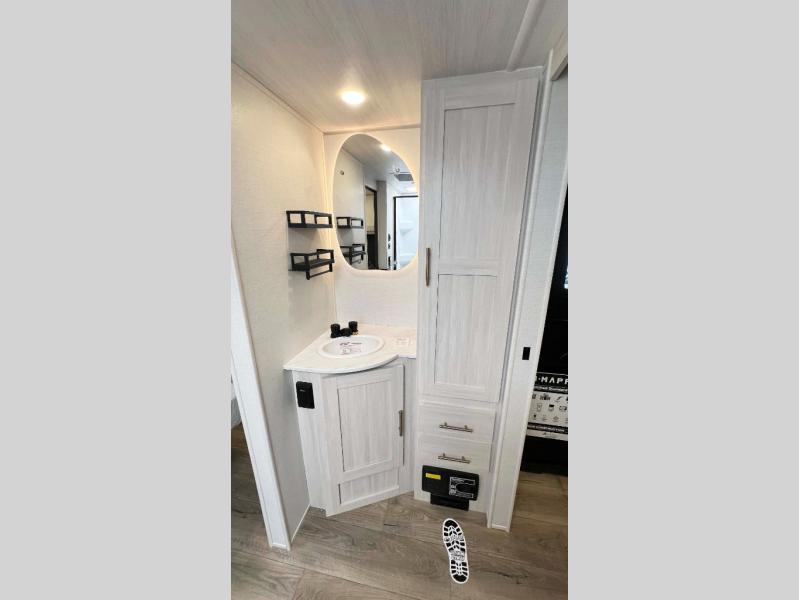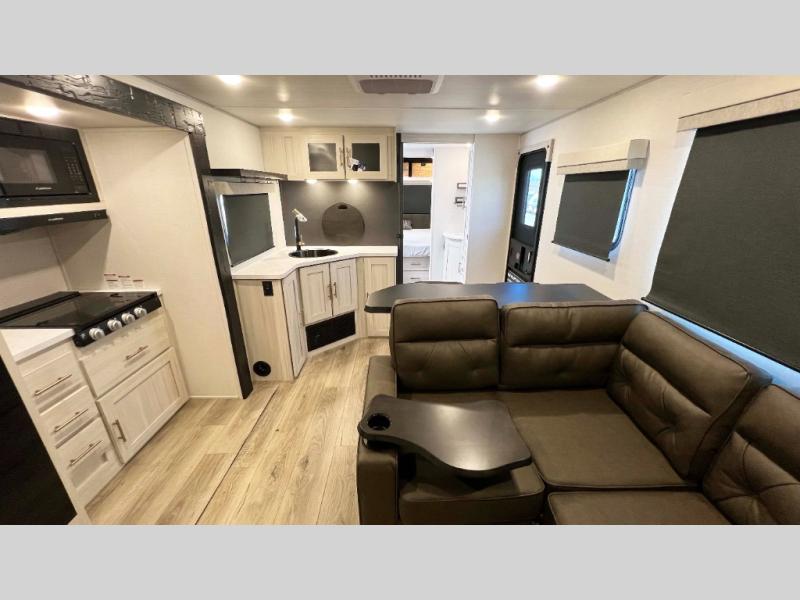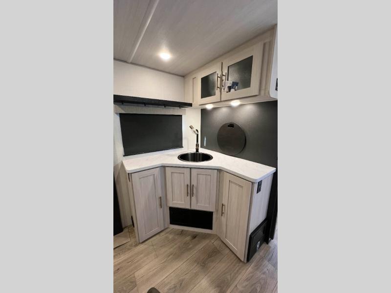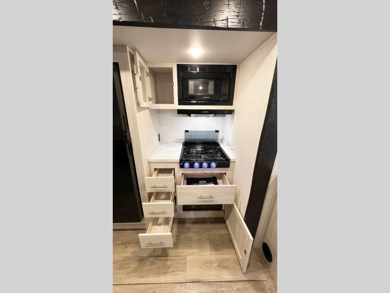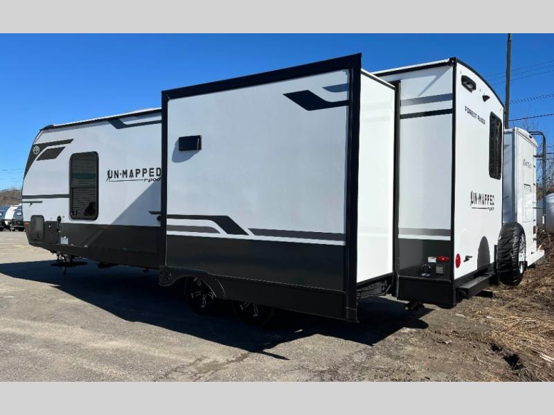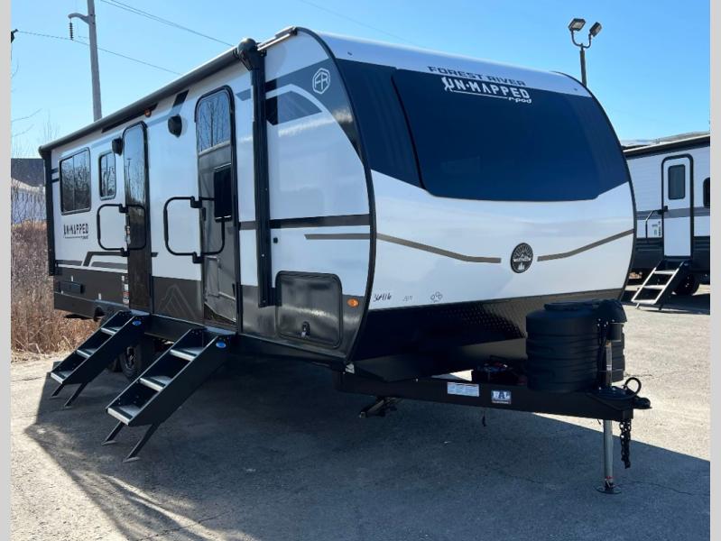 The Forest River Un-Mapped travel trailers deliver an unparalleled travel experience thanks to their incredible features, starting with the aluminum-framed floor with block foam insulation that ensures exceptional structural integrity and thermal efficiency, along with the sealed underbelly with forced heat & radiant foil barrier that provides superior insulation and heat management, and the power tongue jack facilitates easy maneuvering and stabilization of the trailer. Plus, the 30 Amp charge controller with solar inverter prep is ready for integration with solar power systems, catering to eco-conscious travelers seeking off-grid capabilities. Inside, you will find seamless Surf-X kitchen countertops that offer a sleek, durable surface and are easy to maintain for busy travelers. Further, the blackout roller shades will add privacy and light control for restful nights and cozy daytime retreats.