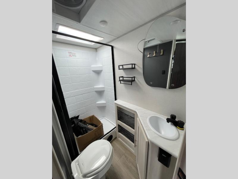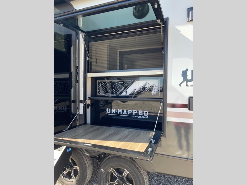 The Forest River Un-Mapped travel trailers deliver an unparalleled travel experience thanks to their incredible features, starting with the aluminum-framed floor with block foam insulation that ensures exceptional structural integrity and thermal efficiency, along with the sealed underbelly with forced heat & radiant foil barrier that provides superior insulation and heat management, and the power tongue jack facilitates easy maneuvering and stabilization of the trailer. Plus, the 30 Amp charge controller with solar inverter prep is ready for integration with solar power systems, catering to eco-conscious travelers seeking off-grid capabilities. Inside, you will find seamless Surf-X kitchen countertops that offer a sleek, durable surface and are easy to maintain for busy travelers. Further, the blackout roller shades will add privacy and light control for restful nights and cozy daytime retreats.