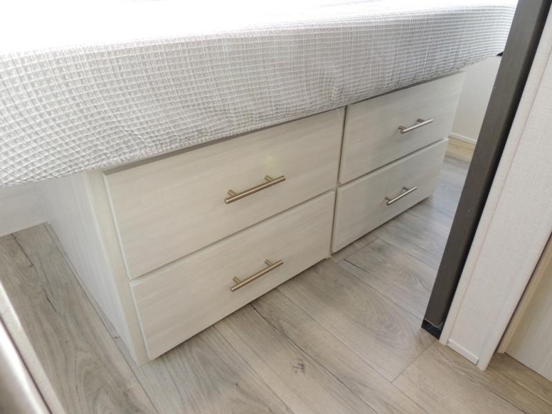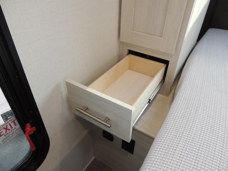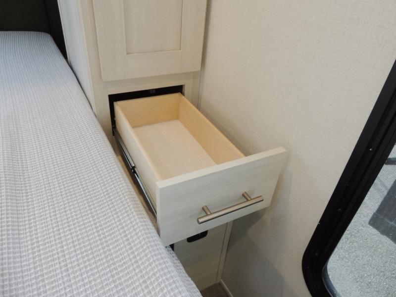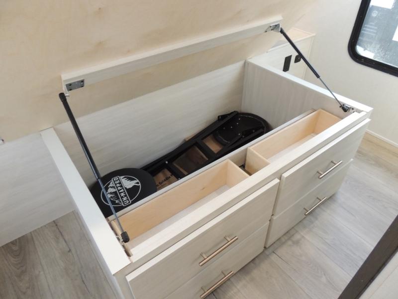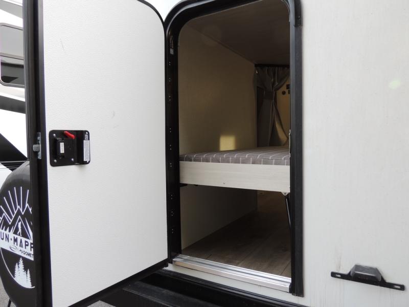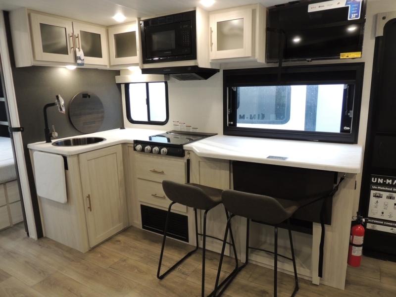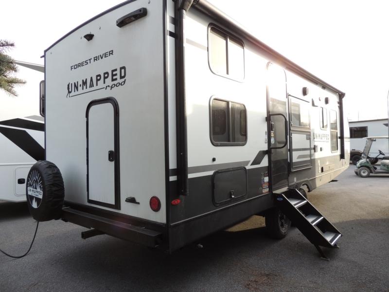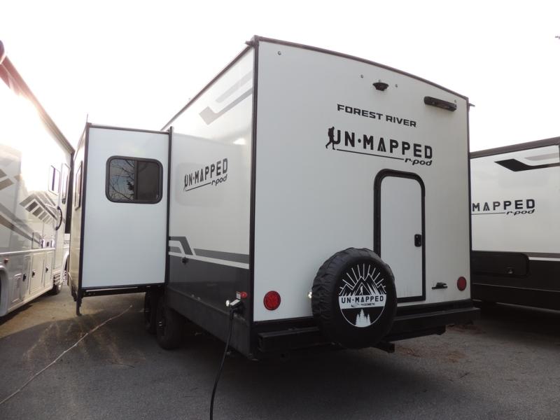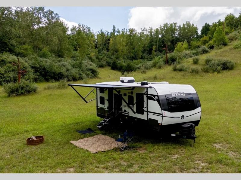 The Forest River Un-Mapped travel trailers deliver an unparalleled travel experience thanks to their incredible features, starting with the aluminum-framed floor with block foam insulation that ensures exceptional structural integrity and thermal efficiency, along with the sealed underbelly with forced heat & radiant foil barrier that provides superior insulation and heat management, and the power tongue jack facilitates easy maneuvering and stabilization of the trailer. Plus, the 30 Amp charge controller with solar inverter prep is ready for integration with solar power systems, catering to eco-conscious travelers seeking off-grid capabilities. Inside, you will find seamless Surf-X kitchen countertops that offer a sleek, durable surface and are easy to maintain for busy travelers. Further, the blackout roller shades will add privacy and light control for restful nights and cozy daytime retreats.