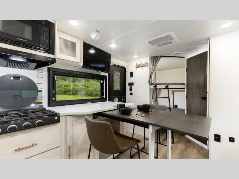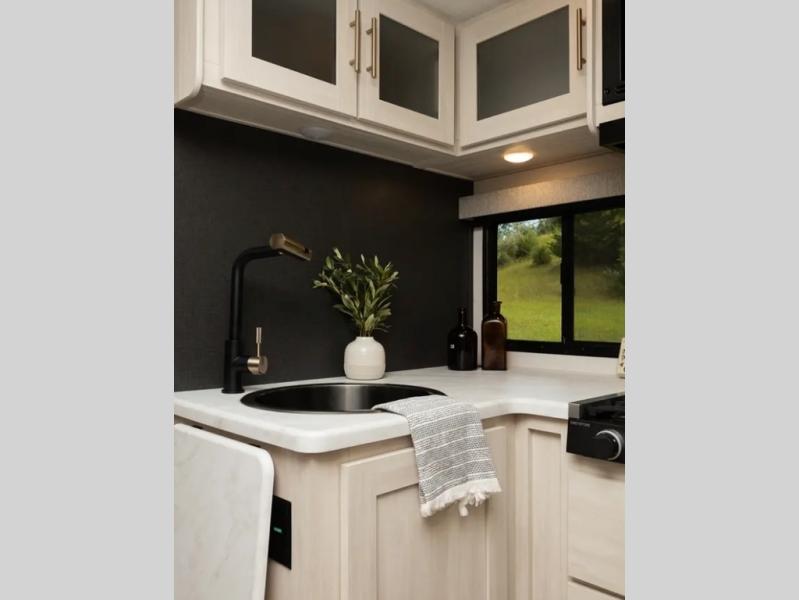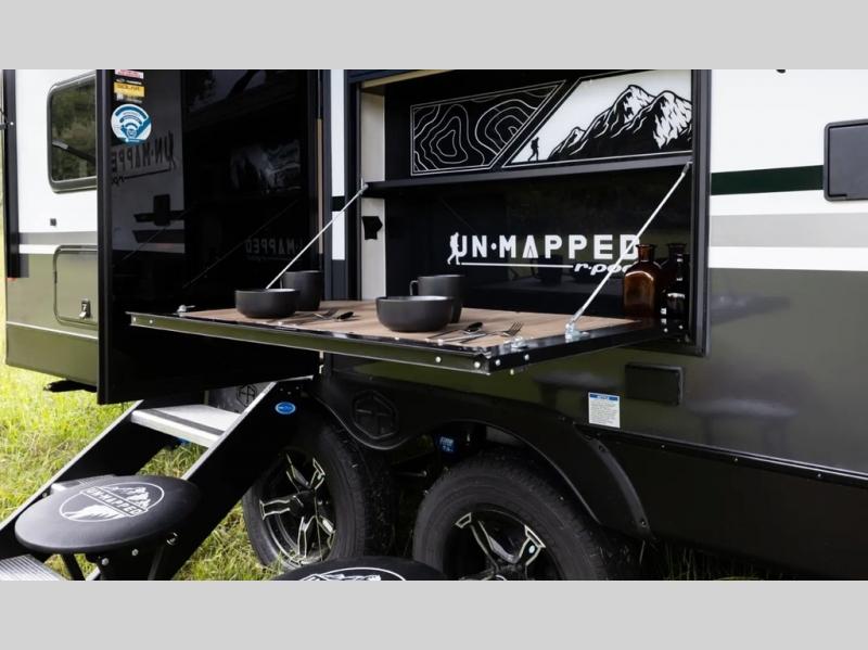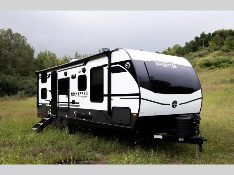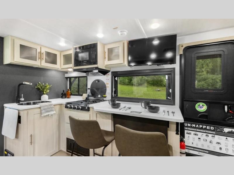 The Forest River Un-Mapped travel trailers deliver an unparalleled travel experience thanks to their incredible features, starting with the aluminum-framed floor with block foam insulation that ensures exceptional structural integrity and thermal efficiency, along with the sealed underbelly with forced heat & radiant foil barrier that provides superior insulation and heat management, and the power tongue jack facilitates easy maneuvering and stabilization of the trailer. Plus, the 30 Amp charge controller with solar inverter prep is ready for integration with solar power systems, catering to eco-conscious travelers seeking off-grid capabilities. Inside, you will find seamless Surf-X kitchen countertops that offer a sleek, durable surface and are easy to maintain for busy travelers. Further, the blackout roller shades will add privacy and light control for restful nights and cozy daytime retreats.