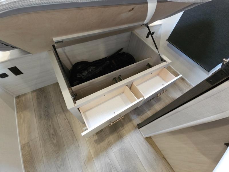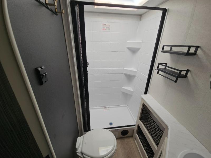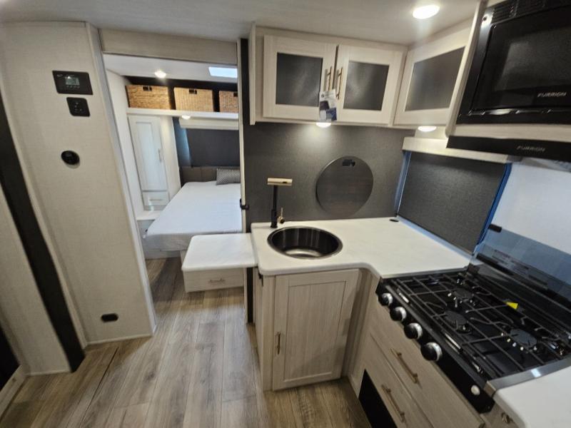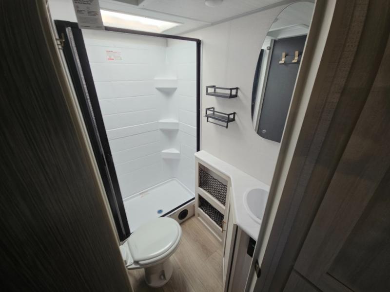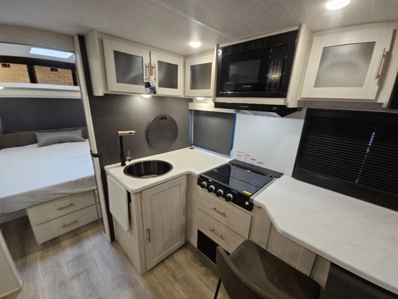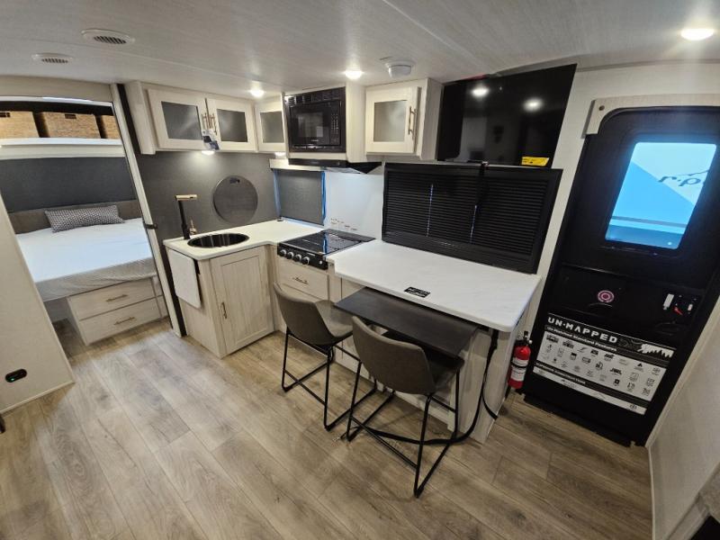 The Forest River Un-Mapped travel trailers deliver an unparalleled travel experience thanks to their incredible features, starting with the aluminum-framed floor with block foam insulation that ensures exceptional structural integrity and thermal efficiency, along with the sealed underbelly with forced heat & radiant foil barrier that provides superior insulation and heat management, and the power tongue jack facilitates easy maneuvering and stabilization of the trailer. Plus, the 30 Amp charge controller with solar inverter prep is ready for integration with solar power systems, catering to eco-conscious travelers seeking off-grid capabilities. Inside, you will find seamless Surf-X kitchen countertops that offer a sleek, durable surface and are easy to maintain for busy travelers. Further, the blackout roller shades will add privacy and light control for restful nights and cozy daytime retreats.