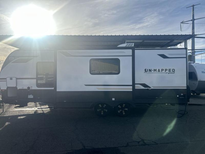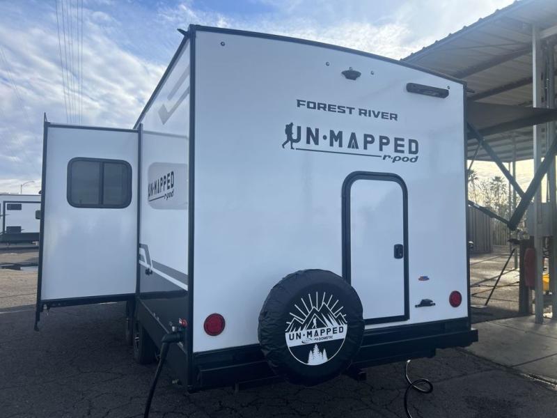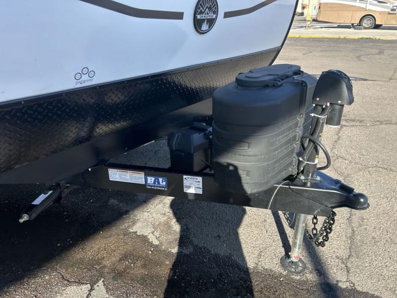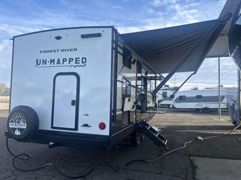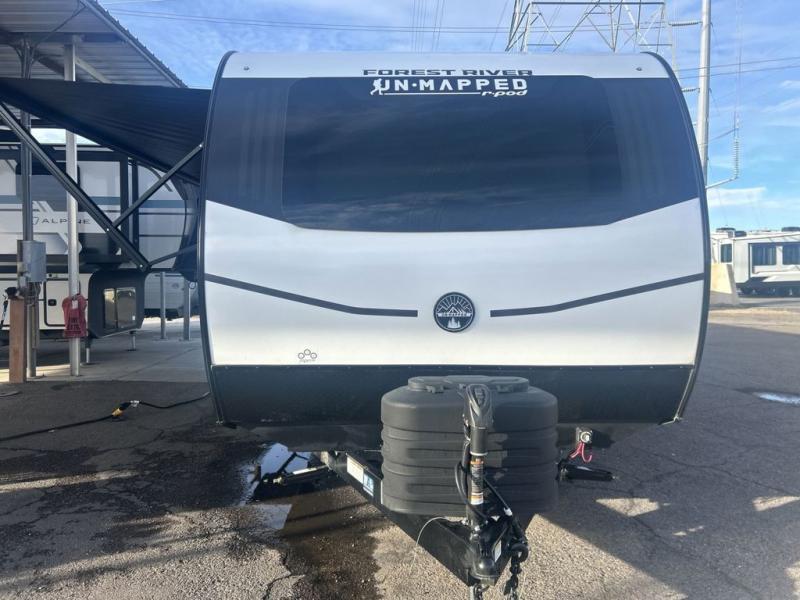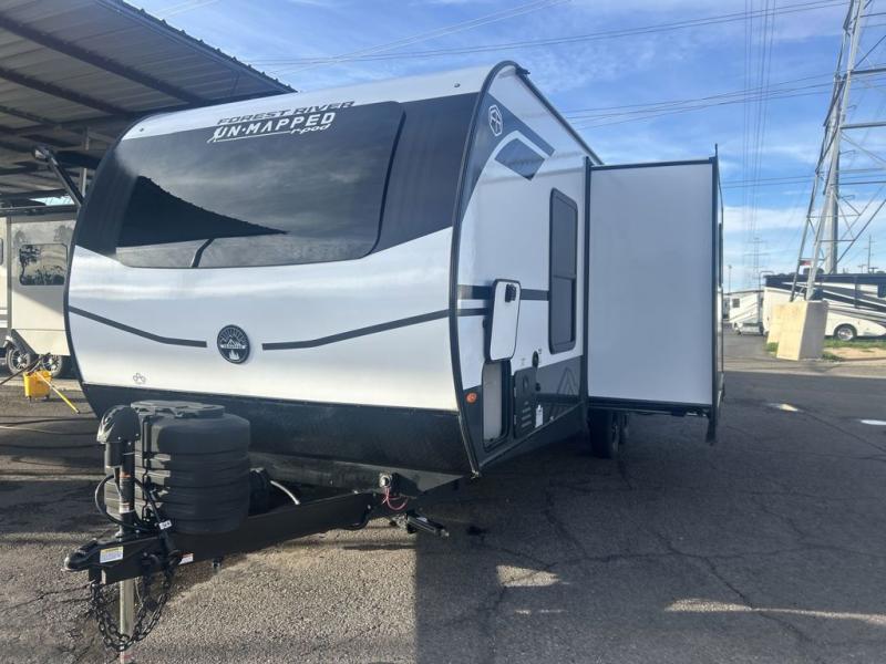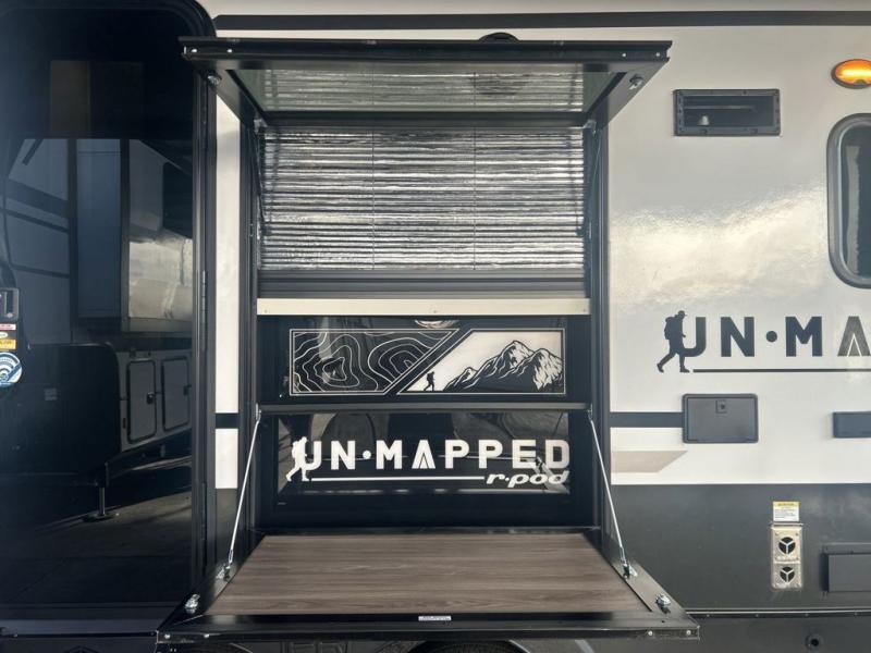 The Forest River Un-Mapped travel trailers deliver an unparalleled travel experience thanks to their incredible features, starting with the aluminum-framed floor with block foam insulation that ensures exceptional structural integrity and thermal efficiency, along with the sealed underbelly with forced heat & radiant foil barrier that provides superior insulation and heat management, and the power tongue jack facilitates easy maneuvering and stabilization of the trailer. Plus, the 30 Amp charge controller with solar inverter prep is ready for integration with solar power systems, catering to eco-conscious travelers seeking off-grid capabilities. Inside, you will find seamless Surf-X kitchen countertops that offer a sleek, durable surface and are easy to maintain for busy travelers. Further, the blackout roller shades will add privacy and light control for restful nights and cozy daytime retreats.