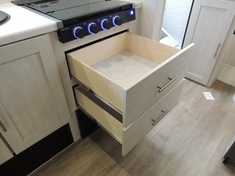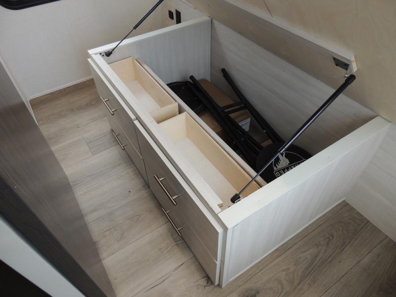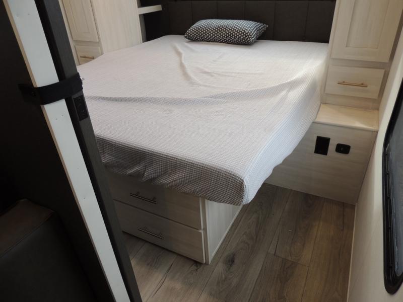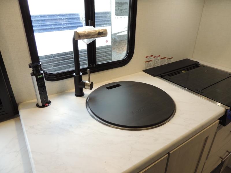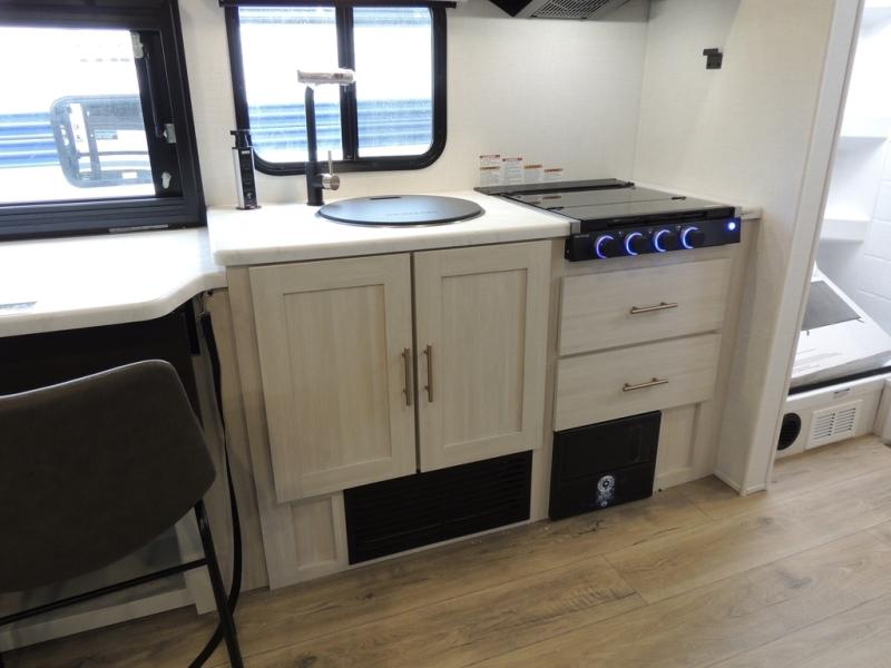 The Forest River Un-Mapped travel trailers deliver an unparalleled travel experience thanks to their incredible features, starting with the aluminum-framed floor with block foam insulation that ensures exceptional structural integrity and thermal efficiency, along with the sealed underbelly with forced heat & radiant foil barrier that provides superior insulation and heat management, and the power tongue jack facilitates easy maneuvering and stabilization of the trailer. Plus, the 30 Amp charge controller with solar inverter prep is ready for integration with solar power systems, catering to eco-conscious travelers seeking off-grid capabilities. Inside, you will find seamless Surf-X kitchen countertops that offer a sleek, durable surface and are easy to maintain for busy travelers. Further, the blackout roller shades will add privacy and light control for restful nights and cozy daytime retreats.