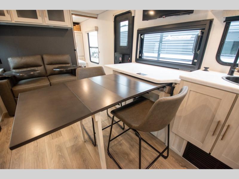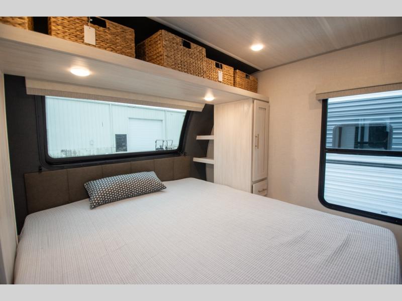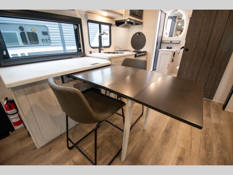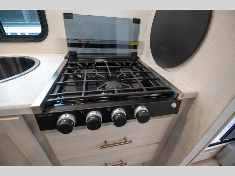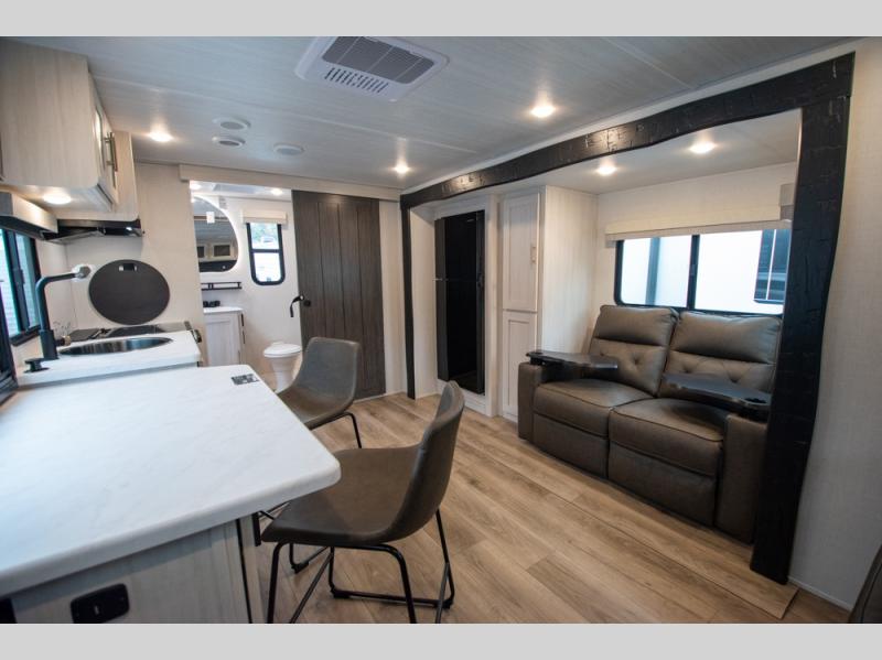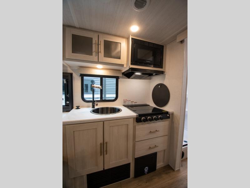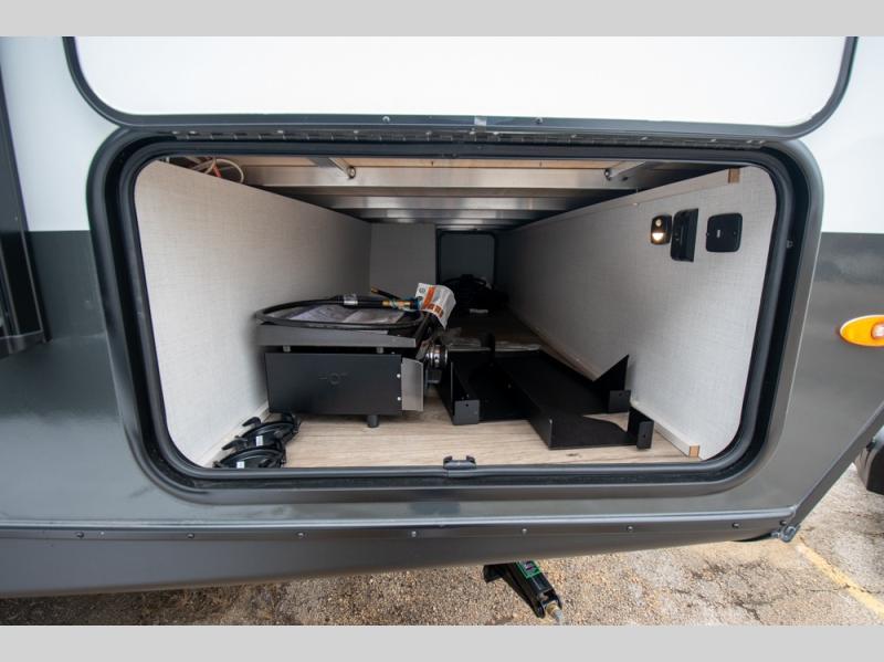 The Forest River Un-Mapped travel trailers deliver an unparalleled travel experience thanks to their incredible features, starting with the aluminum-framed floor with block foam insulation that ensures exceptional structural integrity and thermal efficiency, along with the sealed underbelly with forced heat & radiant foil barrier that provides superior insulation and heat management, and the power tongue jack facilitates easy maneuvering and stabilization of the trailer. Plus, the 30 Amp charge controller with solar inverter prep is ready for integration with solar power systems, catering to eco-conscious travelers seeking off-grid capabilities. Inside, you will find seamless Surf-X kitchen countertops that offer a sleek, durable surface and are easy to maintain for busy travelers. Further, the blackout roller shades will add privacy and light control for restful nights and cozy daytime retreats.