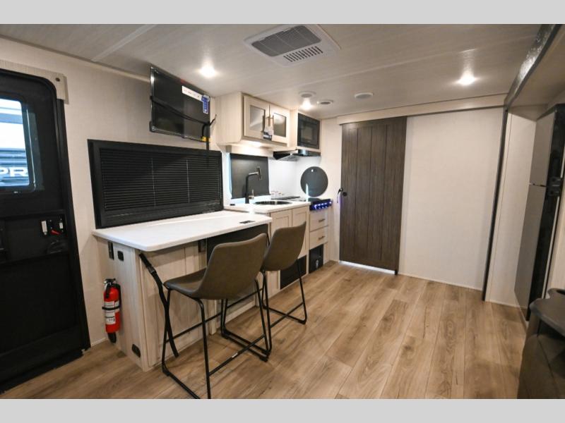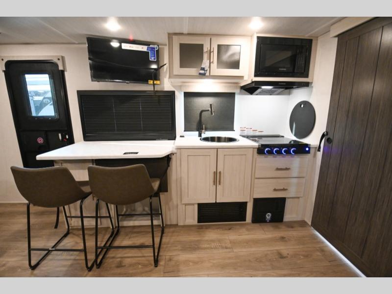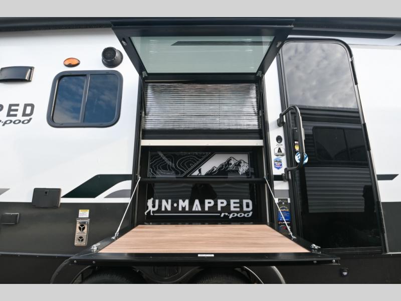 The Forest River Un-Mapped travel trailers deliver an unparalleled travel experience thanks to their incredible features, starting with the aluminum-framed floor with block foam insulation that ensures exceptional structural integrity and thermal efficiency, along with the sealed underbelly with forced heat & radiant foil barrier that provides superior insulation and heat management, and the power tongue jack facilitates easy maneuvering and stabilization of the trailer. Plus, the 30 Amp charge controller with solar inverter prep is ready for integration with solar power systems, catering to eco-conscious travelers seeking off-grid capabilities. Inside, you will find seamless Surf-X kitchen countertops that offer a sleek, durable surface and are easy to maintain for busy travelers. Further, the blackout roller shades will add privacy and light control for restful nights and cozy daytime retreats.