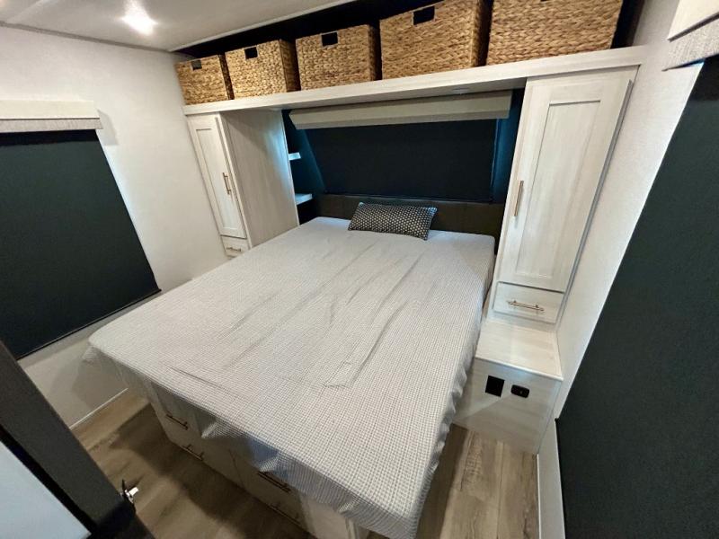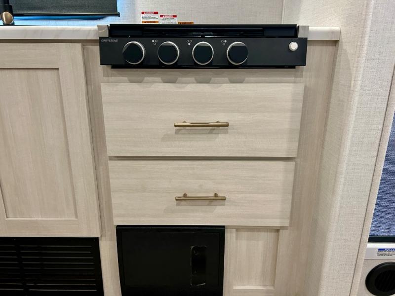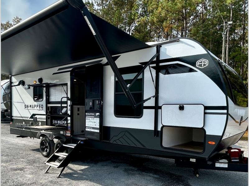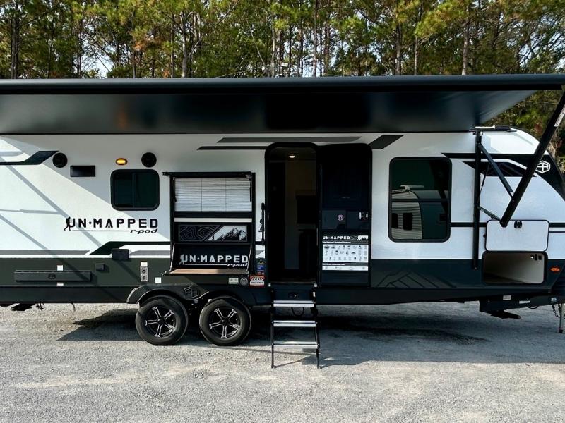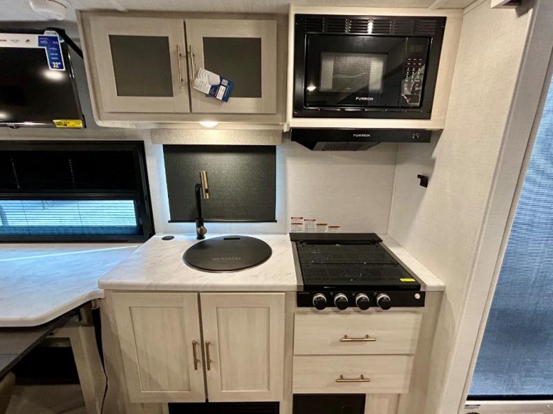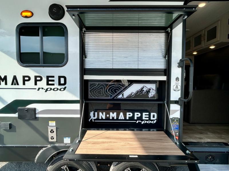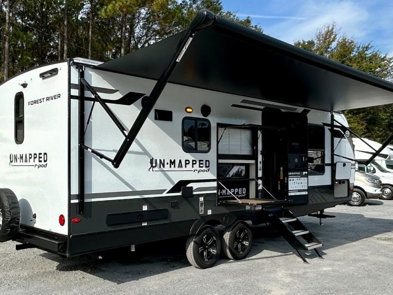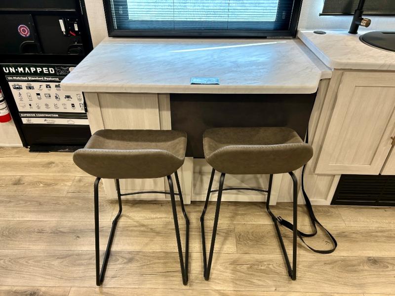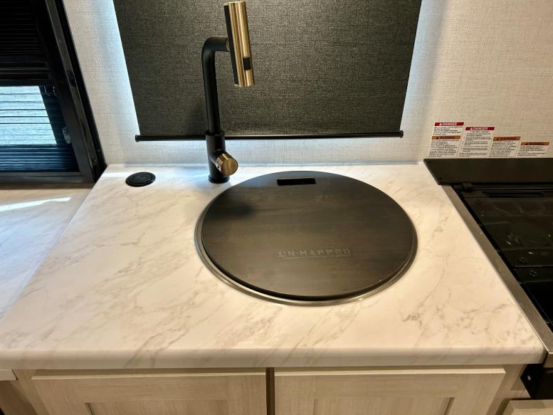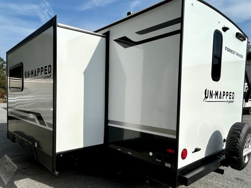 The Forest River Un-Mapped travel trailers deliver an unparalleled travel experience thanks to their incredible features, starting with the aluminum-framed floor with block foam insulation that ensures exceptional structural integrity and thermal efficiency, along with the sealed underbelly with forced heat & radiant foil barrier that provides superior insulation and heat management, and the power tongue jack facilitates easy maneuvering and stabilization of the trailer. Plus, the 30 Amp charge controller with solar inverter prep is ready for integration with solar power systems, catering to eco-conscious travelers seeking off-grid capabilities. Inside, you will find seamless Surf-X kitchen countertops that offer a sleek, durable surface and are easy to maintain for busy travelers. Further, the blackout roller shades will add privacy and light control for restful nights and cozy daytime retreats.