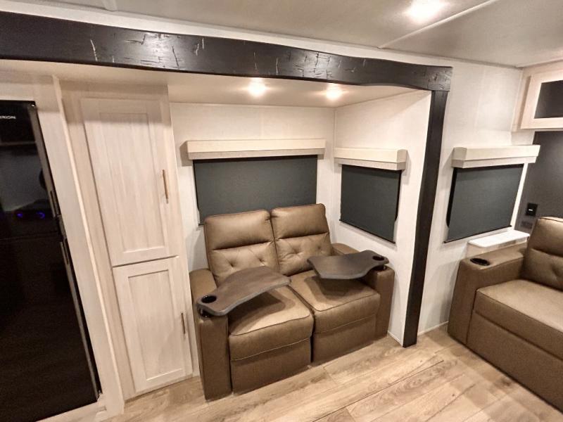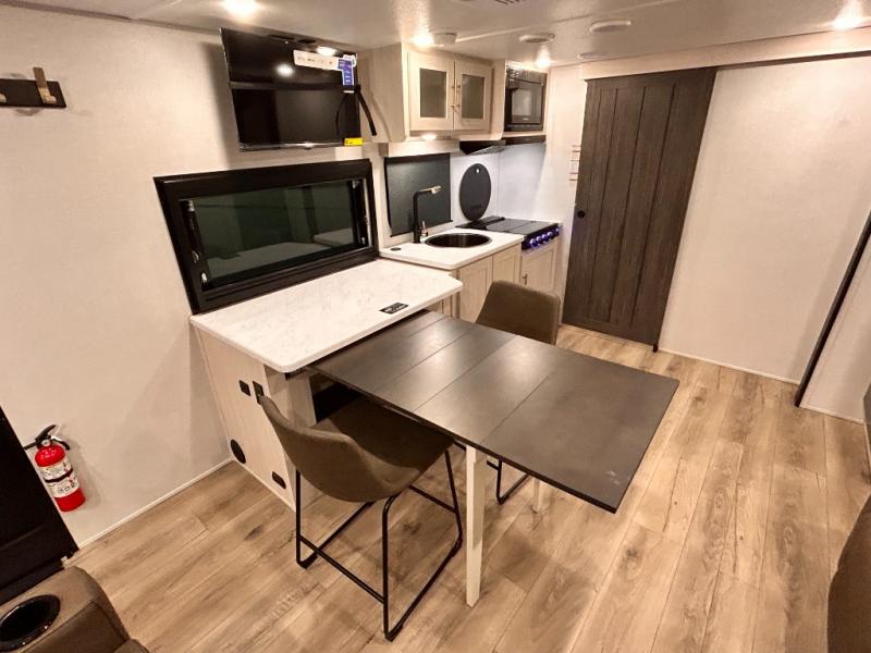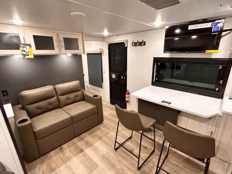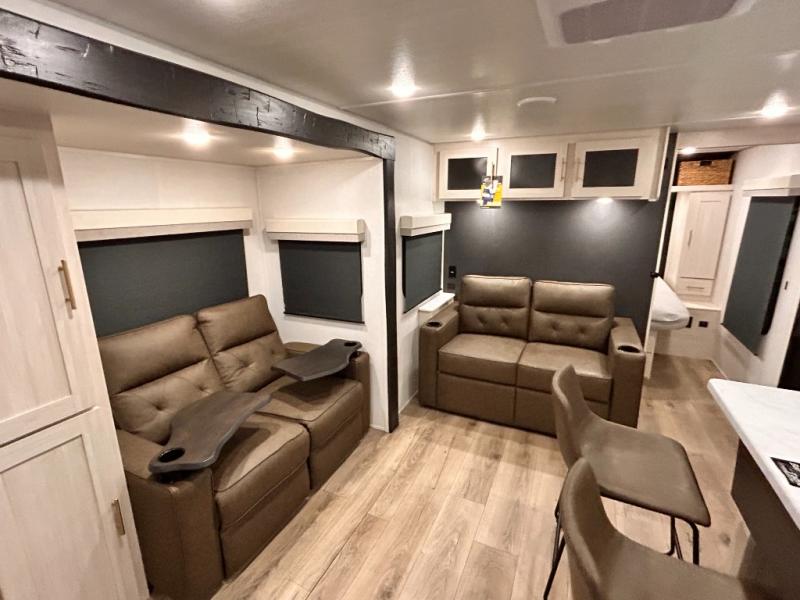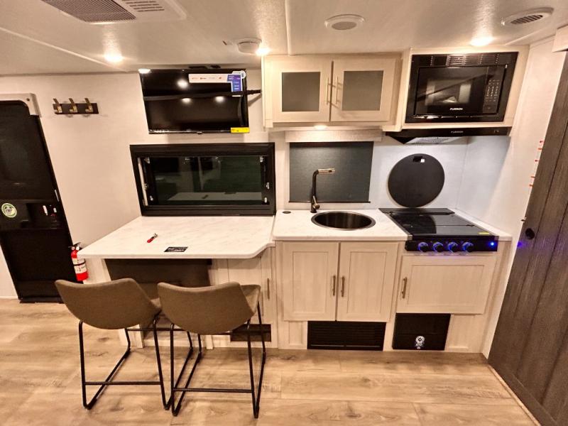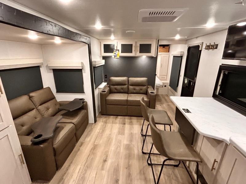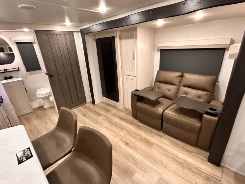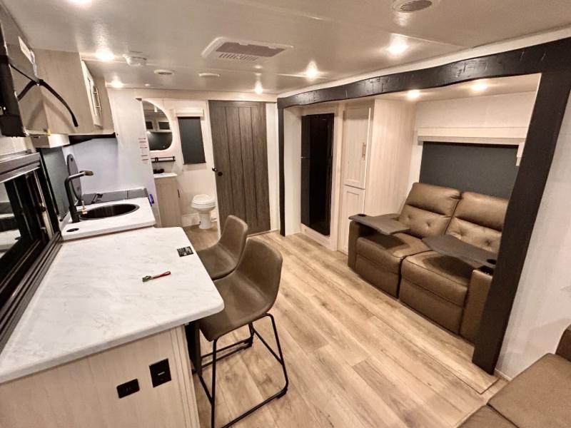 OUTDOR KITCHEN / TAILGATE BAR TOP WITH 2 CHAIR / PUL OUT DINETTE TABLE / THEATER SEATING / KING BED / 400 W SOLAR !!