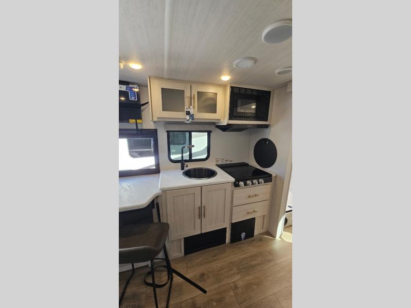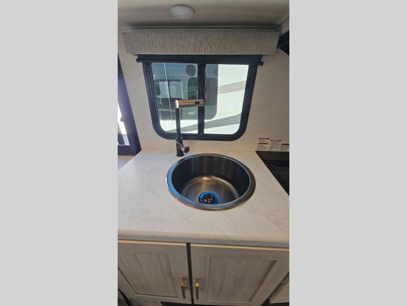 The Forest River Un-Mapped travel trailers deliver an unparalleled travel experience thanks to their incredible features, starting with the aluminum-framed floor with block foam insulation that ensures exceptional structural integrity and thermal efficiency, along with the sealed underbelly with forced heat & radiant foil barrier that provides superior insulation and heat management, and the power tongue jack facilitates easy maneuvering and stabilization of the trailer. Plus, the 30 Amp charge controller with solar inverter prep is ready for integration with solar power systems, catering to eco-conscious travelers seeking off-grid capabilities. Inside, you will find seamless Surf-X kitchen countertops that offer a sleek, durable surface and are easy to maintain for busy travelers. Further, the blackout roller shades will add privacy and light control for restful nights and cozy daytime retreats.
