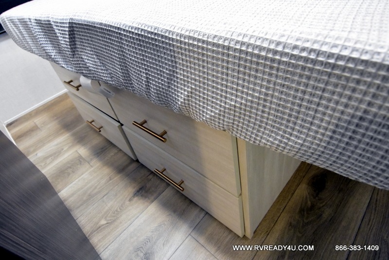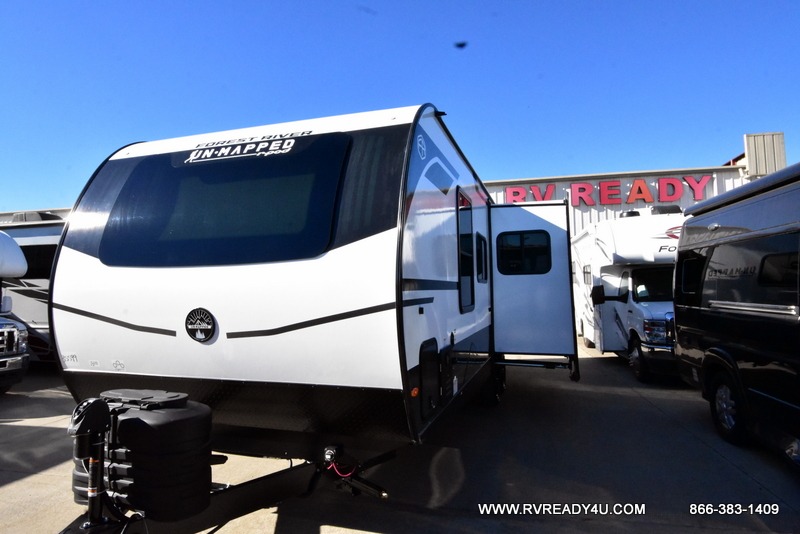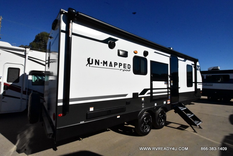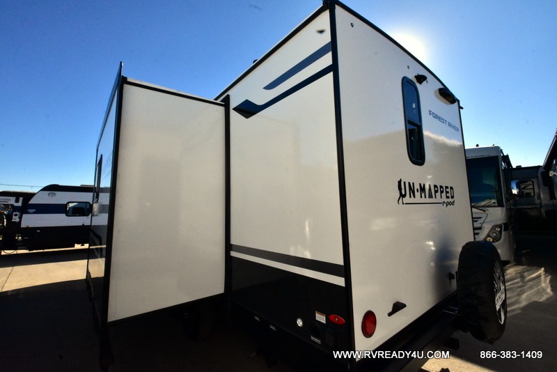 The Forest River Un-Mapped travel trailers deliver an unparalleled travel experience thanks to their incredible features, starting with the aluminum-framed floor with block foam insulation that ensures exceptional structural integrity and thermal efficiency, along with the sealed underbelly with forced heat & radiant foil barrier that provides superior insulation and heat management, and the power tongue jack facilitates easy maneuvering and stabilization of the trailer. Plus, the 30 Amp charge controller with solar inverter prep is ready for integration with solar power systems, catering to eco-conscious travelers seeking off-grid capabilities. Inside, you will find seamless Surf-X kitchen countertops that offer a sleek, durable surface and are easy to maintain for busy travelers. Further, the blackout roller shades will add privacy and light control for restful nights and cozy daytime retreats.
