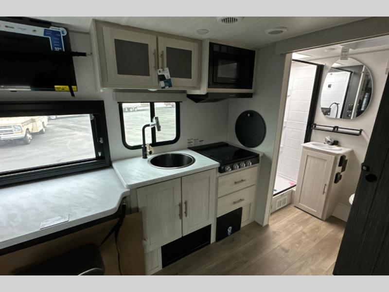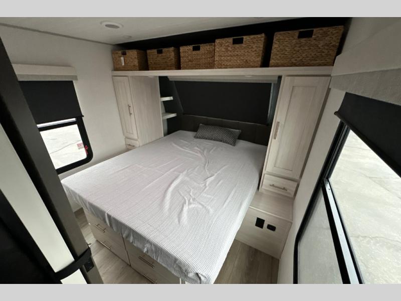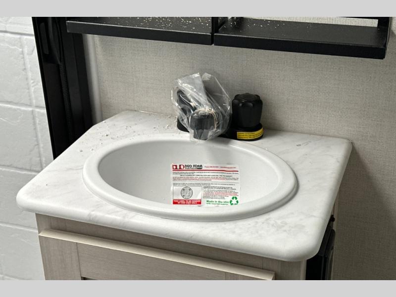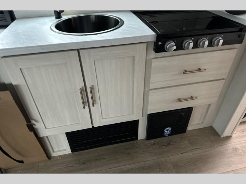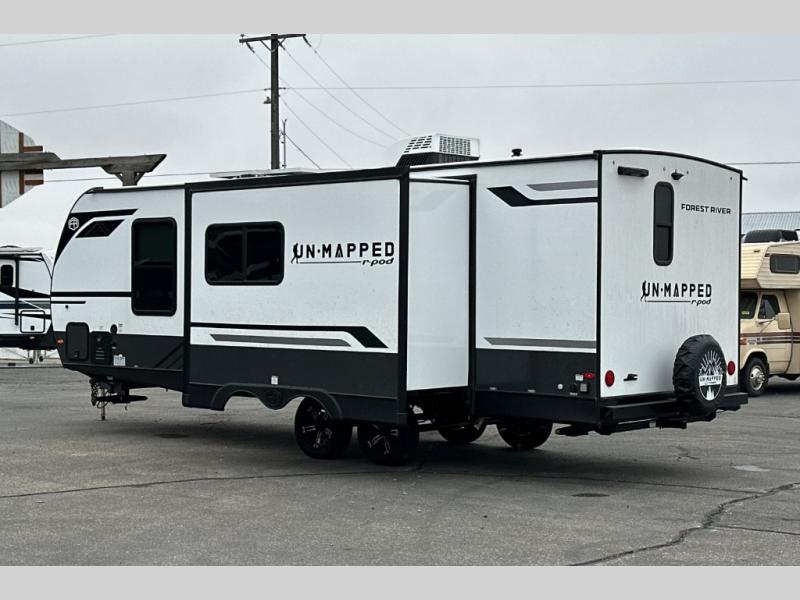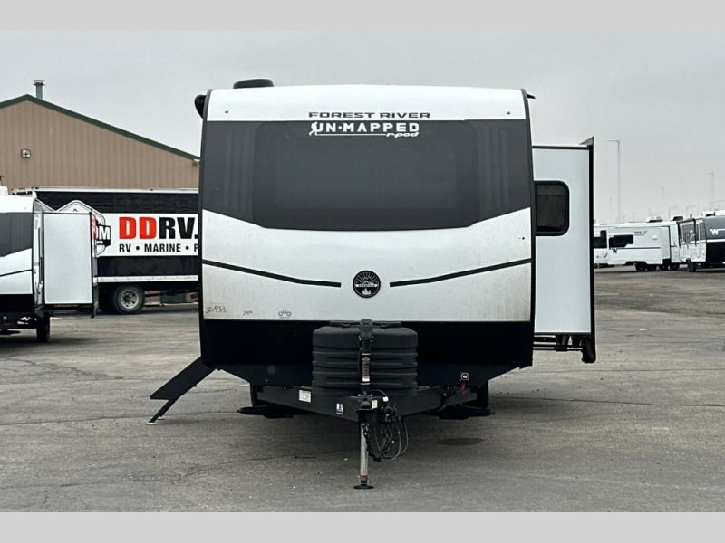 The Forest River Un-Mapped travel trailers deliver an unparalleled travel experience thanks to their incredible features, starting with the aluminum-framed floor with block foam insulation that ensures exceptional structural integrity and thermal efficiency, along with the sealed underbelly with forced heat & radiant foil barrier that provides superior insulation and heat management, and the power tongue jack facilitates easy maneuvering and stabilization of the trailer. Plus, the 30 Amp charge controller with solar inverter prep is ready for integration with solar power systems, catering to eco-conscious travelers seeking off-grid capabilities. Inside, you will find seamless Surf-X kitchen countertops that offer a sleek, durable surface and are easy to maintain for busy travelers. Further, the blackout roller shades will add privacy and light control for restful nights and cozy daytime retreats.
