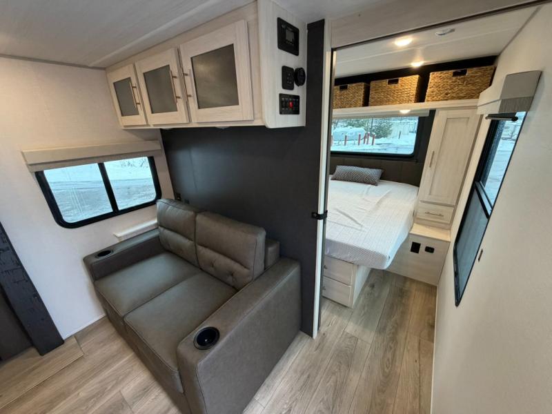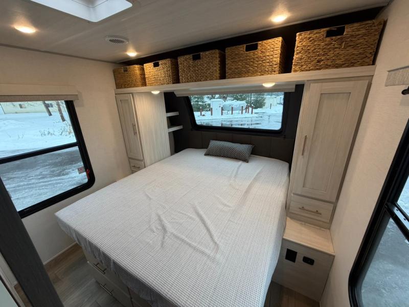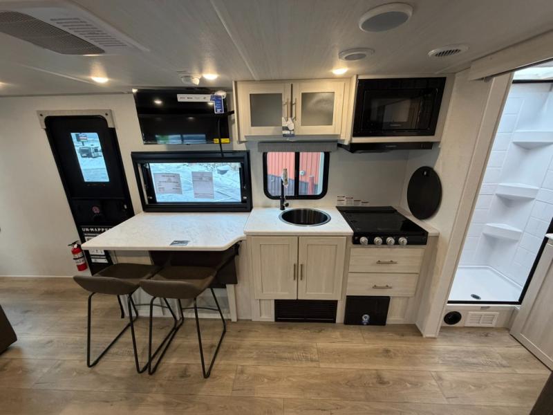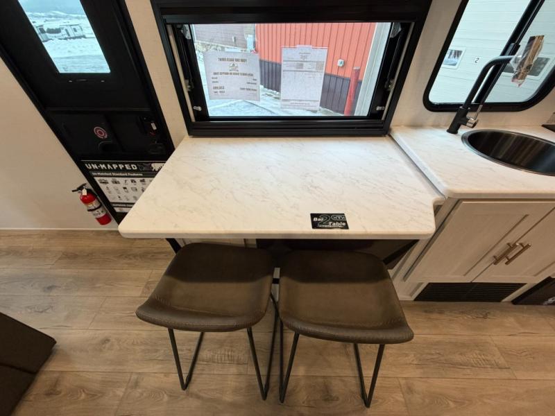 The Forest River Un-Mapped travel trailers deliver an unparalleled travel experience thanks to their incredible features, starting with the aluminum-framed floor with block foam insulation that ensures exceptional structural integrity and thermal efficiency, along with the sealed underbelly with forced heat & radiant foil barrier that provides superior insulation and heat management, and the power tongue jack facilitates easy maneuvering and stabilization of the trailer. Plus, the 30 Amp charge controller with solar inverter prep is ready for integration with solar power systems, catering to eco-conscious travelers seeking off-grid capabilities. Inside, you will find seamless Surf-X kitchen countertops that offer a sleek, durable surface and are easy to maintain for busy travelers. Further, the blackout roller shades will add privacy and light control for restful nights and cozy daytime retreats.