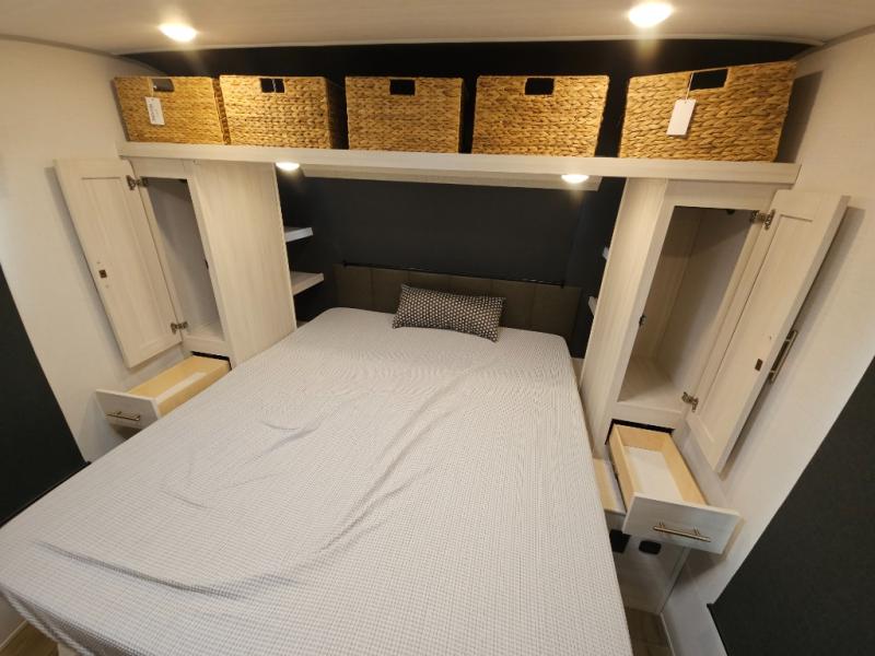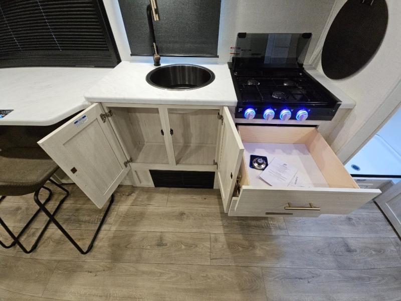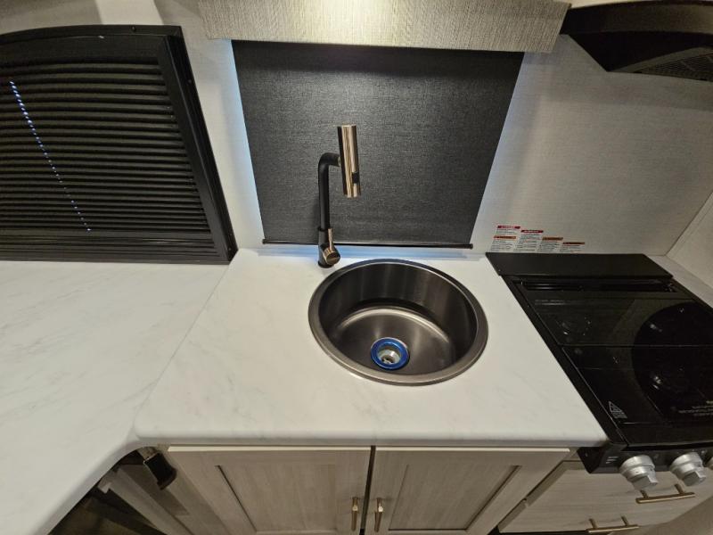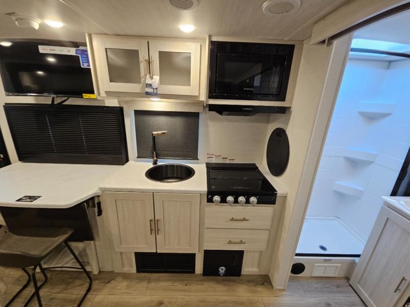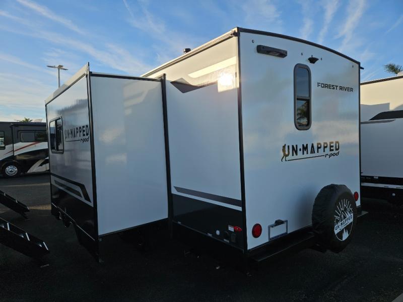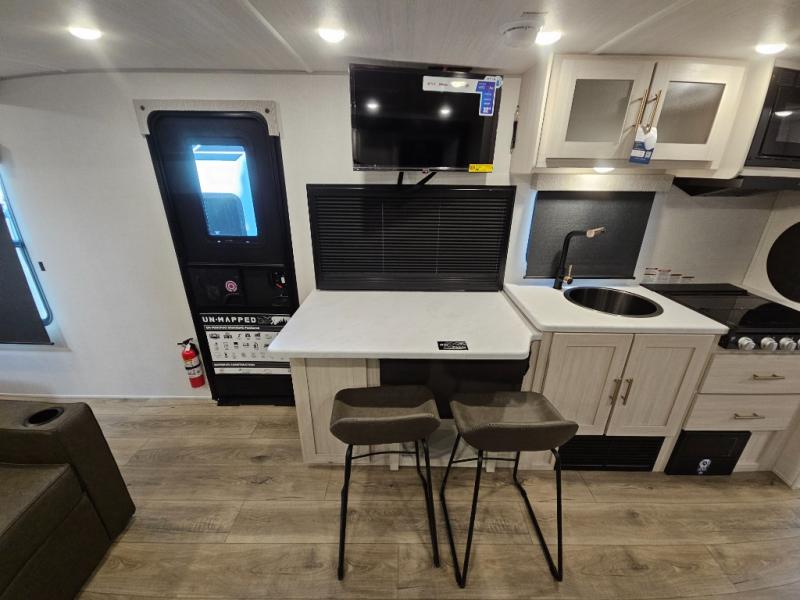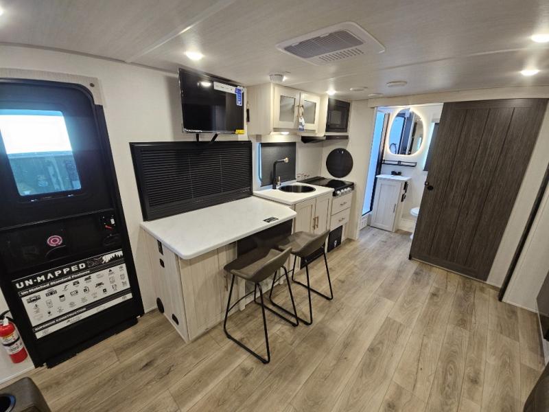 The Forest River Un-Mapped travel trailers deliver an unparalleled travel experience thanks to their incredible features, starting with the aluminum-framed floor with block foam insulation that ensures exceptional structural integrity and thermal efficiency, along with the sealed underbelly with forced heat & radiant foil barrier that provides superior insulation and heat management, and the power tongue jack facilitates easy maneuvering and stabilization of the trailer. Plus, the 30 Amp charge controller with solar inverter prep is ready for integration with solar power systems, catering to eco-conscious travelers seeking off-grid capabilities. Inside, you will find seamless Surf-X kitchen countertops that offer a sleek, durable surface and are easy to maintain for busy travelers. Further, the blackout roller shades will add privacy and light control for restful nights and cozy daytime retreats.