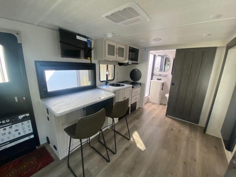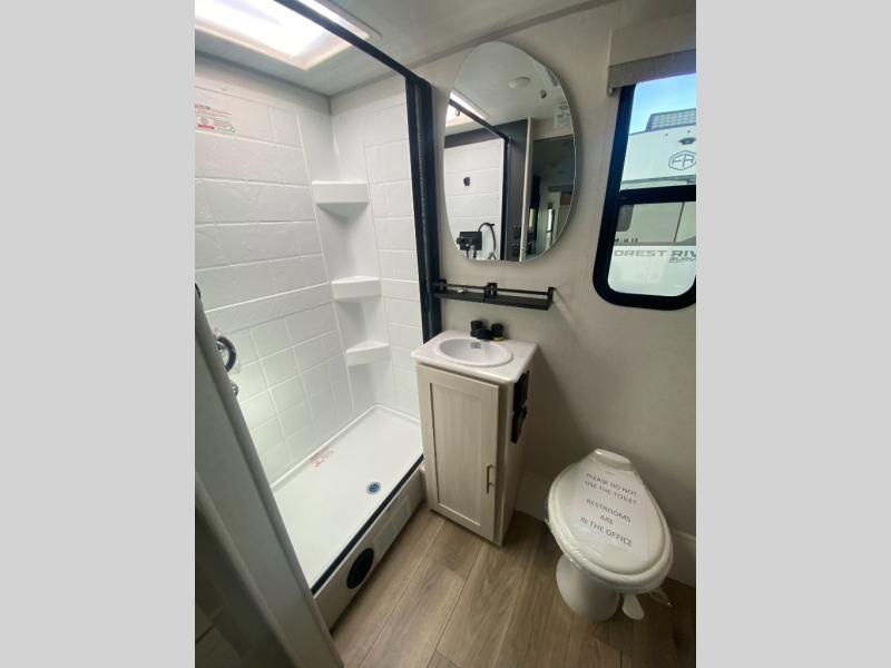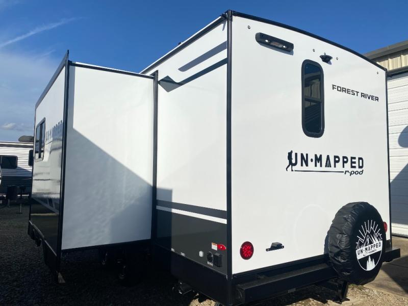 The Forest River Un-Mapped travel trailers deliver an unparalleled travel experience thanks to their incredible features, starting with the aluminum-framed floor with block foam insulation that ensures exceptional structural integrity and thermal efficiency, along with the sealed underbelly with forced heat & radiant foil barrier that provides superior insulation and heat management, and the power tongue jack facilitates easy maneuvering and stabilization of the trailer. Plus, the 30 Amp charge controller with solar inverter prep is ready for integration with solar power systems, catering to eco-conscious travelers seeking off-grid capabilities. Inside, you will find seamless Surf-X kitchen countertops that offer a sleek, durable surface and are easy to maintain for busy travelers. Further, the blackout roller shades will add privacy and light control for restful nights and cozy daytime retreats.
