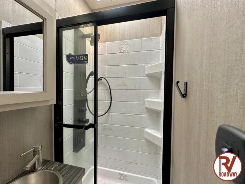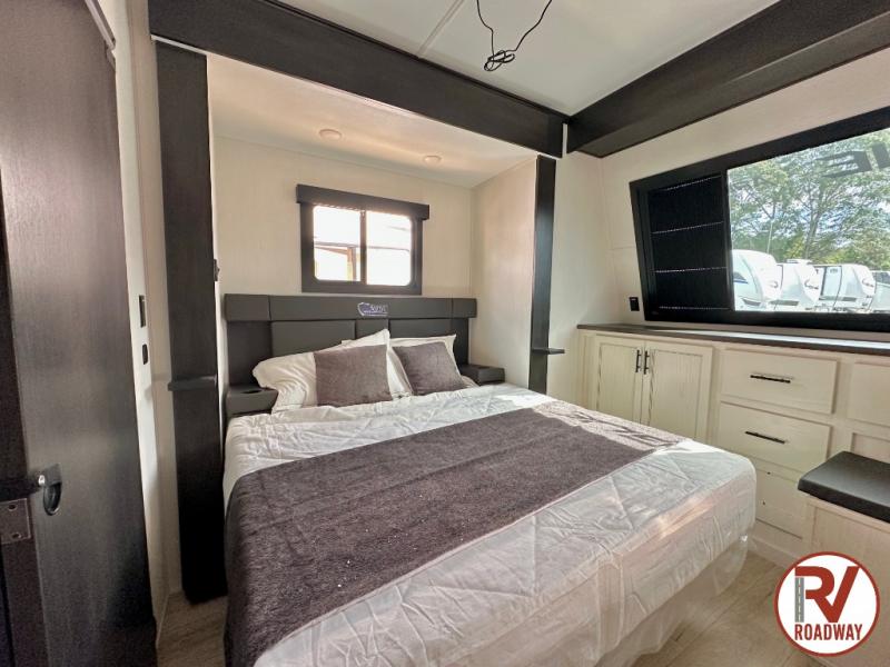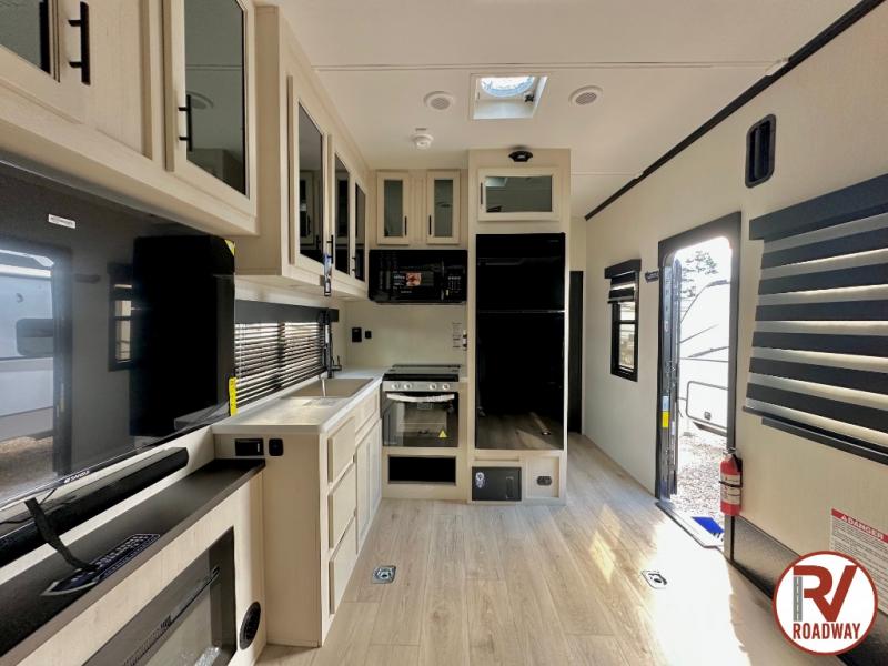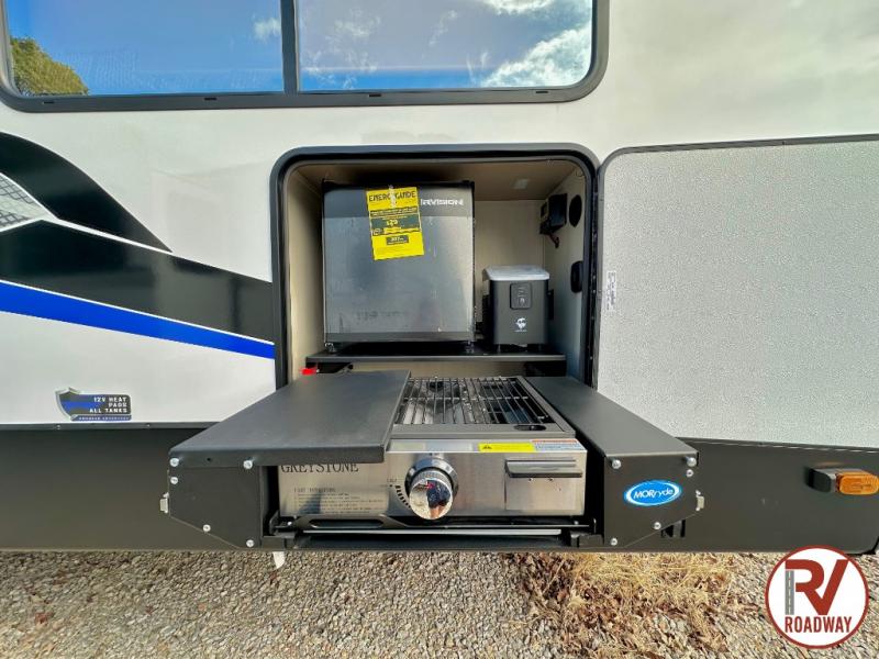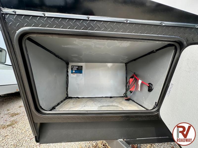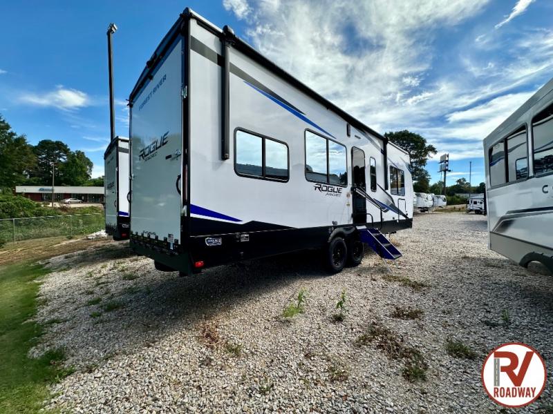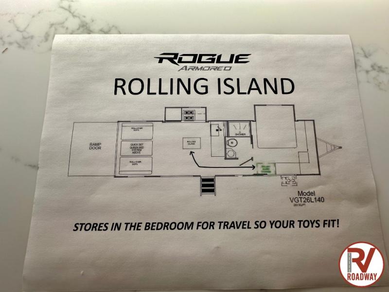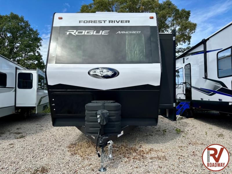 Every one of these Forest River Vengeance Rogue Armored travel trailer toy haulers come with the features you want most at an affordable price tag! The DuraPoxy gas/oil resistant floor has 5,000 lb. tie downs to ensure your toys will arrive safely without damaging the flooring, plus the 3,000 lb. rated ramp door makes it easy to load them. A 15,000 BTU A/C will keep you cool even on the hottest summer days, and there are heated enclosed holding tanks with 12V heat pads on every tank for added protection. Each model includes a fuel station with a digital readout, a ramp door patio system, a tire pressure monitoring system, and many more stand-out features. Inside, you'll find zebra shades in the living room, multiple USB charging stations, a multi-functional kitchen sink, glass shower doors, and many more comforts!