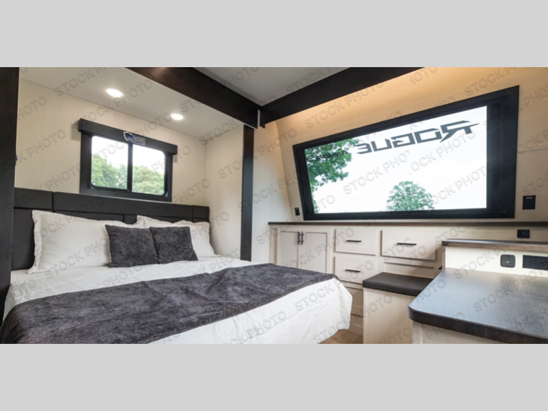 Every one of these Forest River Vengeance Rogue Armored travel trailer toy haulers come with the features you want most at an affordable price tag! The DuraPoxy gas/oil resistant floor has 5,000 lb. tie downs to ensure your toys will arrive safely without damaging the flooring, plus the 3,000 lb. rated ramp door makes it easy to load them. A 15,000 BTU A/C will keep you cool even on the hottest summer days, and there are heated enclosed holding tanks with 12V heat pads on every tank for added protection. Each model includes a fuel station with a digital readout, a ramp door patio system, a tire pressure monitoring system, and many more stand-out features. Inside, you'll find zebra shades in the living room, multiple USB charging stations, a multi-functional kitchen sink, glass shower doors, and many more comforts!