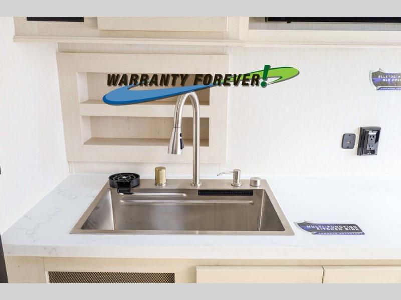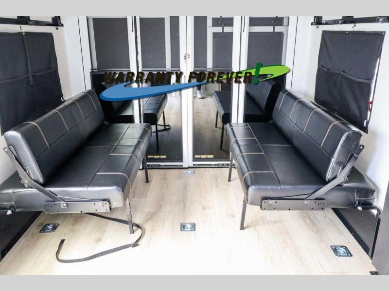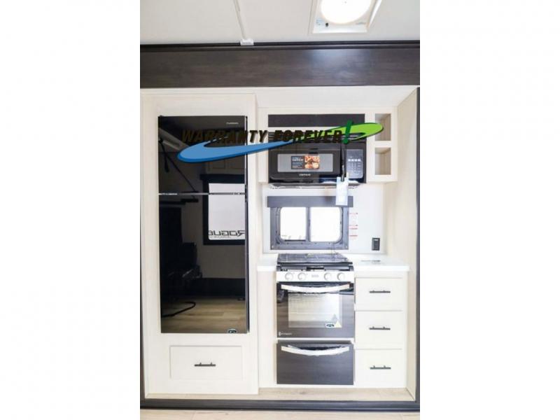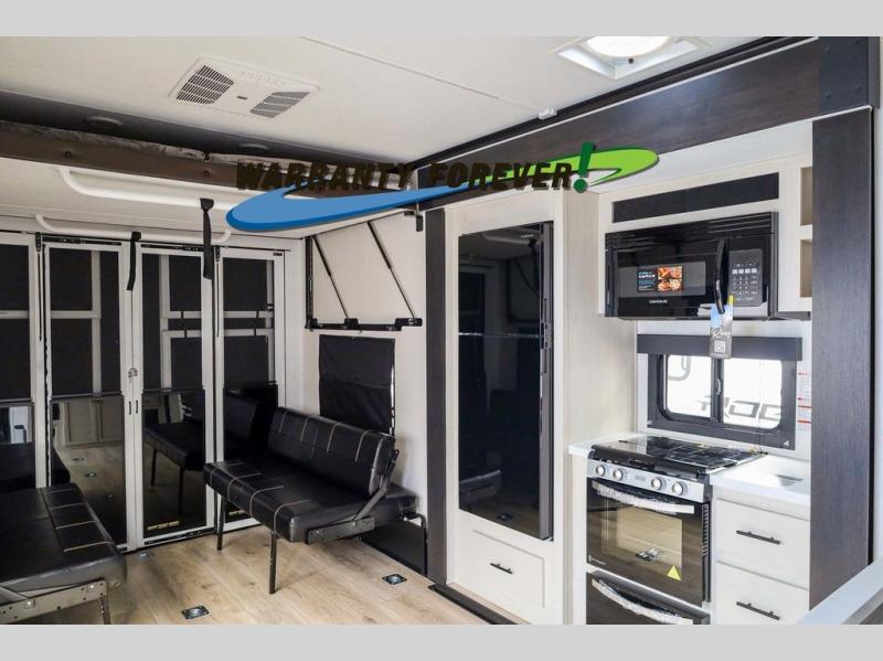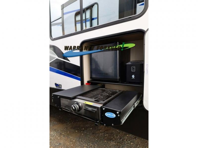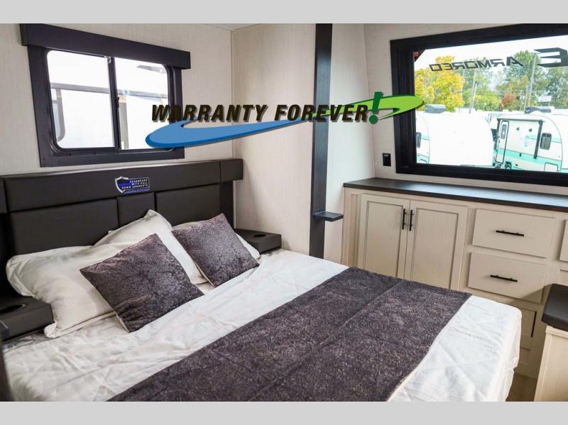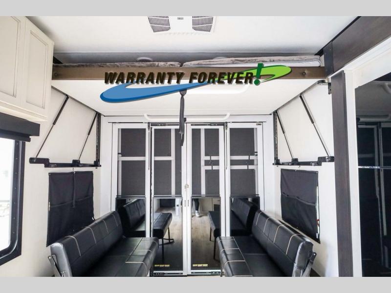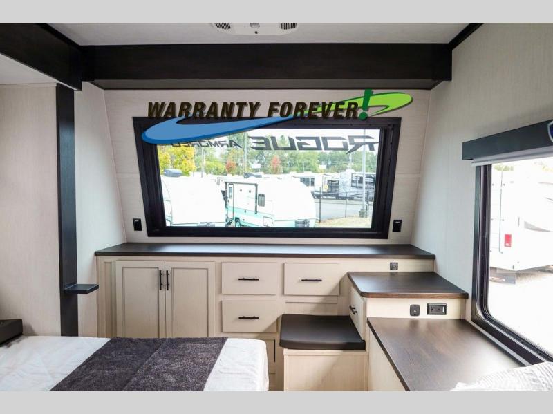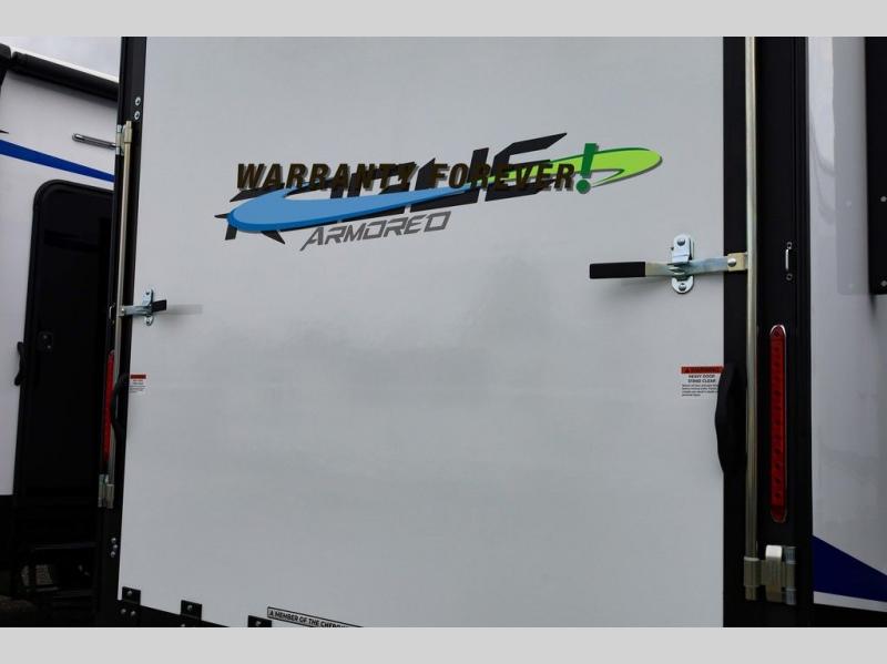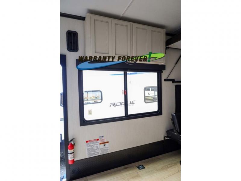 Every one of these Forest River Vengeance Rogue Armored travel trailer toy haulers come with the features you want most at an affordable price tag! The DuraPoxy gas/oil resistant floor has 5,000 lb. tie downs to ensure your toys will arrive safely without damaging the flooring, plus the 3,000 lb. rated ramp door makes it easy to load them. A 15,000 BTU A/C will keep you cool even on the hottest summer days, and there are heated enclosed holding tanks with 12V heat pads on every tank for added protection. Each model includes a fuel station with a digital readout, a ramp door patio system, a tire pressure monitoring system, and many more stand-out features. Inside, you'll find zebra shades in the living room, multiple USB charging stations, a multi-functional kitchen sink, glass shower doors, and many more comforts!