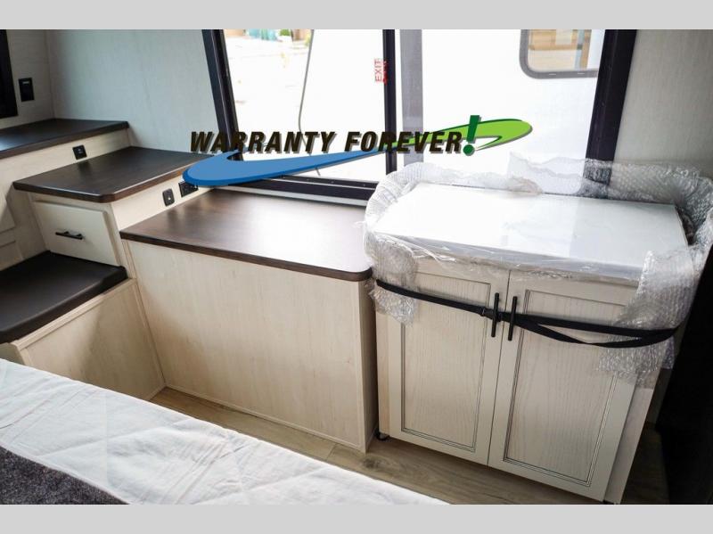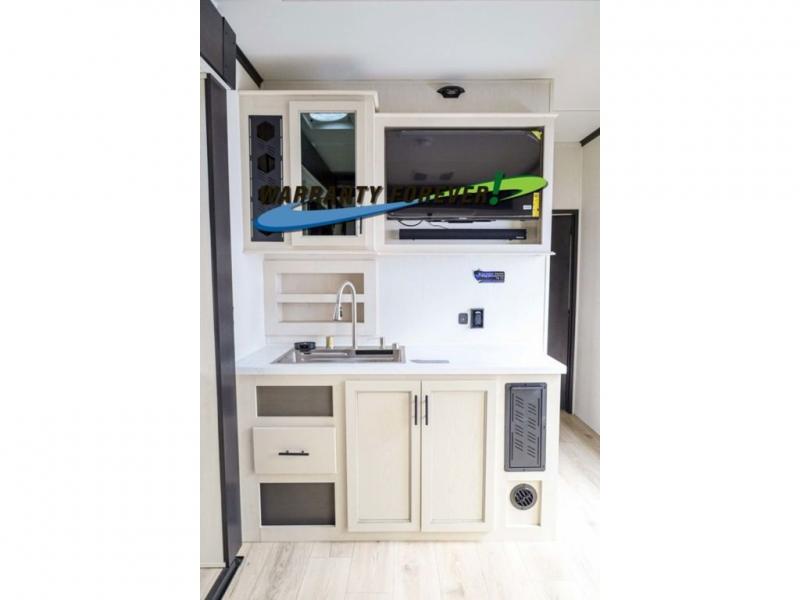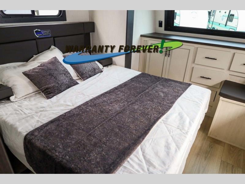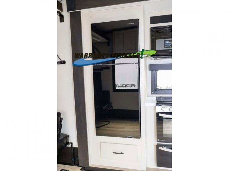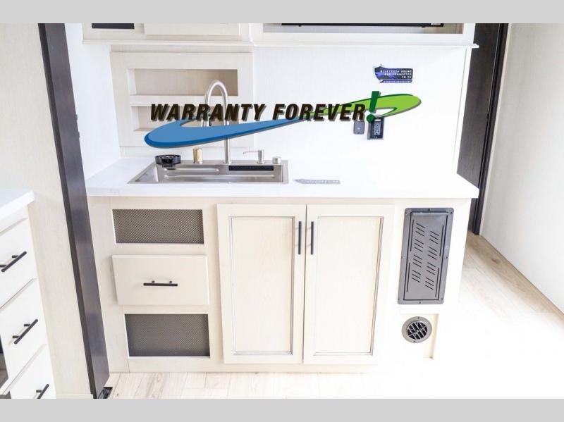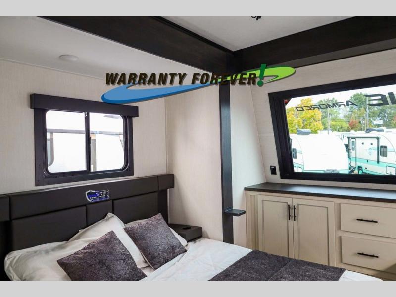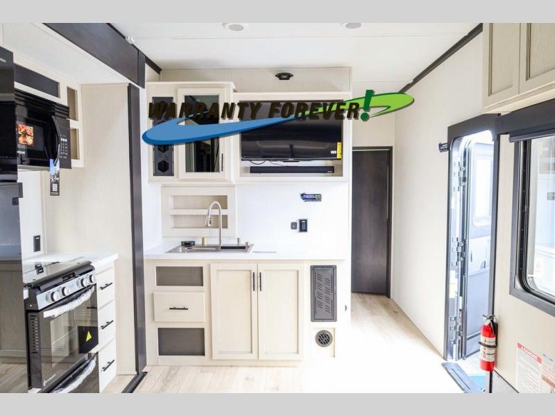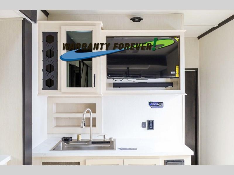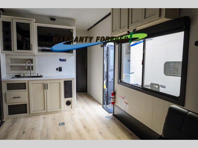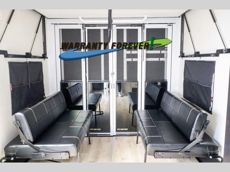 Every one of these Forest River Vengeance Rogue Armored travel trailer toy haulers come with the features you want most at an affordable price tag! The DuraPoxy gas/oil resistant floor has 5,000 lb. tie downs to ensure your toys will arrive safely without damaging the flooring, plus the 3,000 lb. rated ramp door makes it easy to load them. A 15,000 BTU A/C will keep you cool even on the hottest summer days, and there are heated enclosed holding tanks with 12V heat pads on every tank for added protection. Each model includes a fuel station with a digital readout, a ramp door patio system, a tire pressure monitoring system, and many more stand-out features. Inside, you'll find zebra shades in the living room, multiple USB charging stations, a multi-functional kitchen sink, glass shower doors, and many more comforts!
