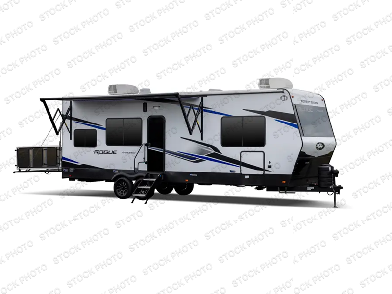 Every one of these Forest River Vengeance Rogue Armored travel trailer toy haulers come with the features you want most at an affordable price tag! The DuraPoxy gas/oil resistant floor has 5,000 lb. tie downs to ensure your toys will arrive safely without damaging the flooring, plus the 3,000 lb. rated ramp door makes it easy to load them. A 15,000 BTU A/C will keep you cool even on the hottest summer days, and there are heated enclosed holding tanks with 12V heat pads on every tank for added protection. Each model includes a fuel station with a digital readout, a ramp door patio system, a tire pressure monitoring system, and many more stand-out features. Inside, you'll find zebra shades in the living room, multiple USB charging stations, a multi-functional kitchen sink, glass shower doors, and many more comforts!