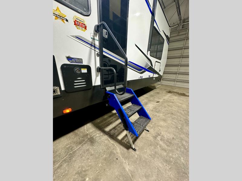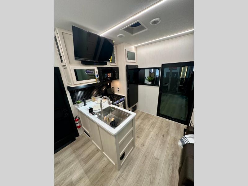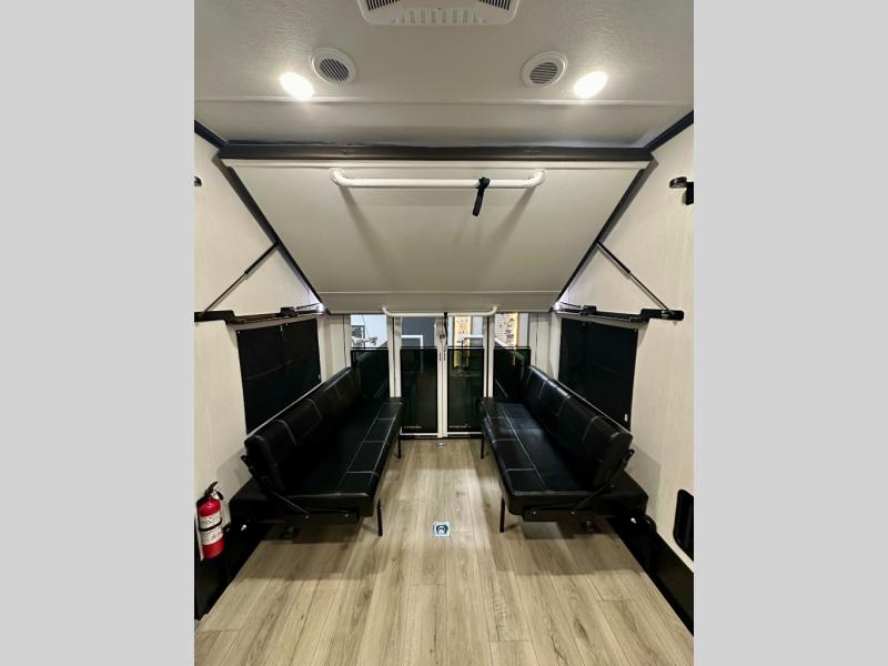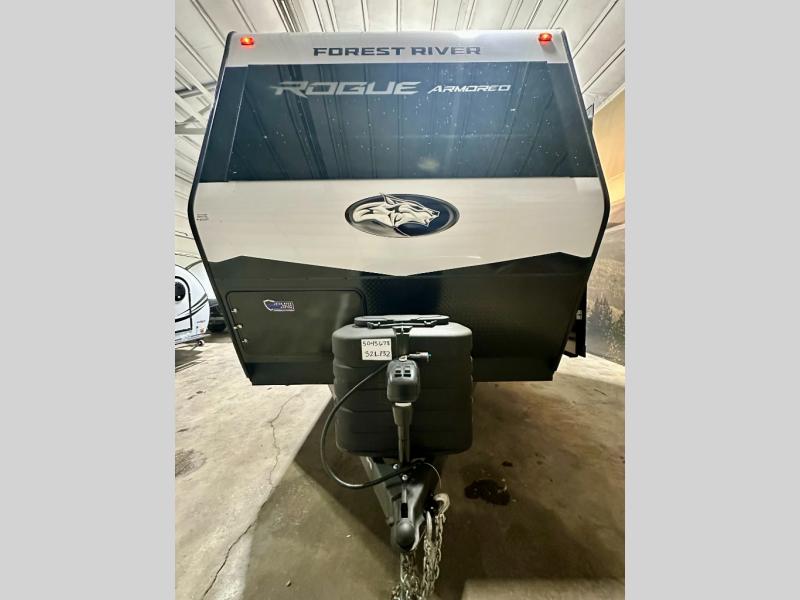 Every one of these Forest River Vengeance Rogue Armored travel trailer toy haulers come with the features you want most at an affordable price tag! The DuraPoxy gas/oil resistant floor has 5,000 lb. tie downs to ensure your toys will arrive safely without damaging the flooring, plus the 3,000 lb. rated ramp door makes it easy to load them. A 15,000 BTU A/C will keep you cool even on the hottest summer days, and there are heated enclosed holding tanks with 12V heat pads on every tank for added protection. Each model includes a fuel station with a digital readout, a ramp door patio system, a tire pressure monitoring system, and many more stand-out features. Inside, you'll find zebra shades in the living room, multiple USB charging stations, a multi-functional kitchen sink, glass shower doors, and many more comforts!