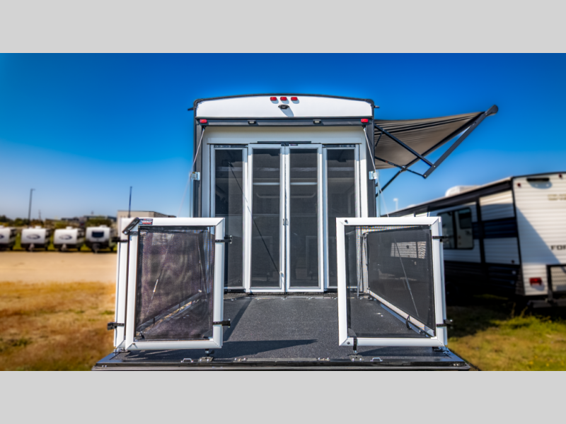 - 11' armored garage with 5,000-lb floor tie-downs and 3,000-lb ramp door—your gear hauls securely