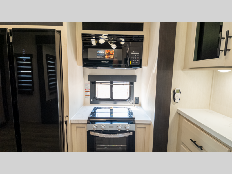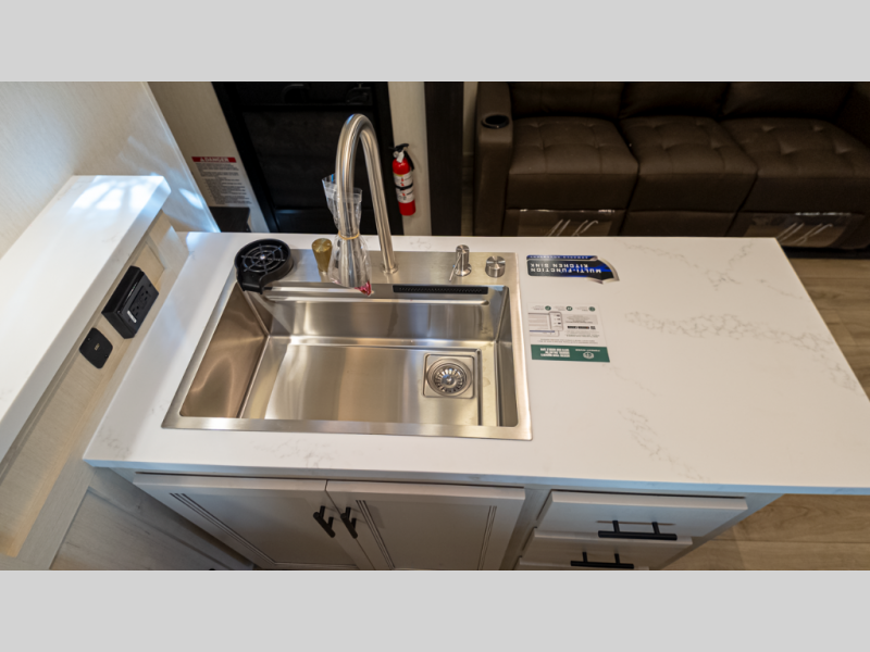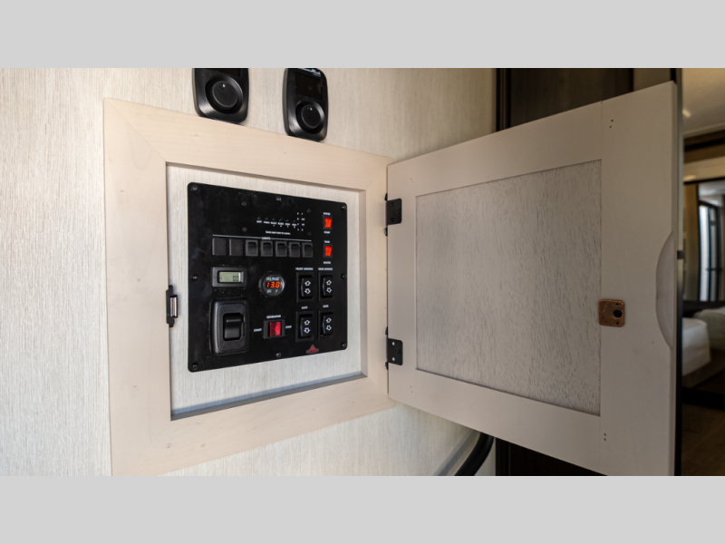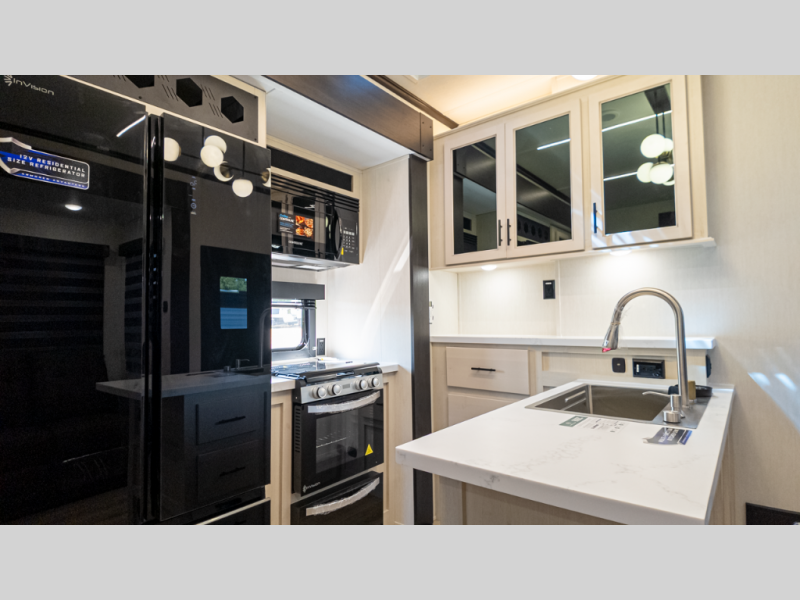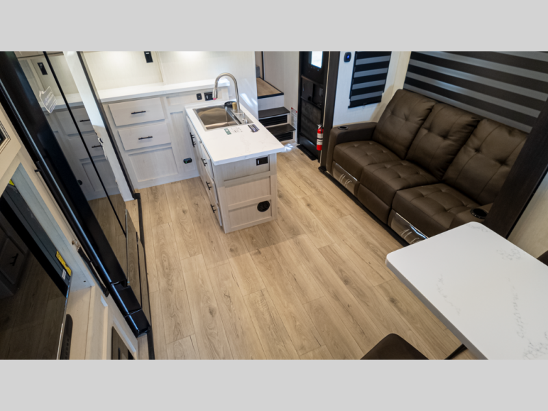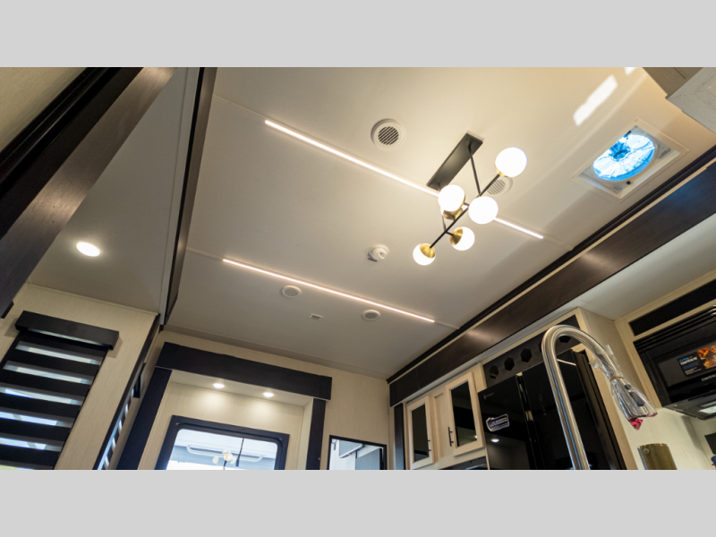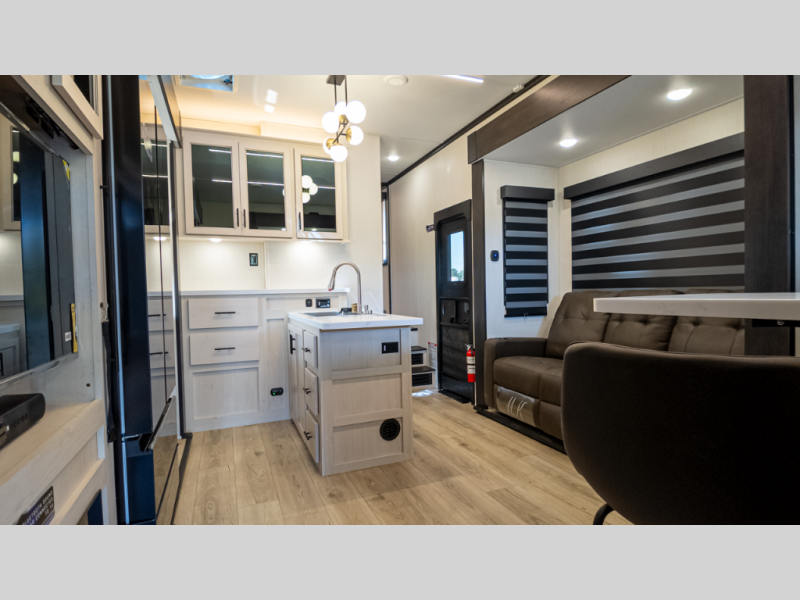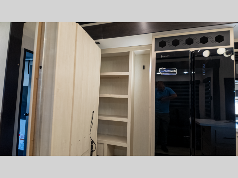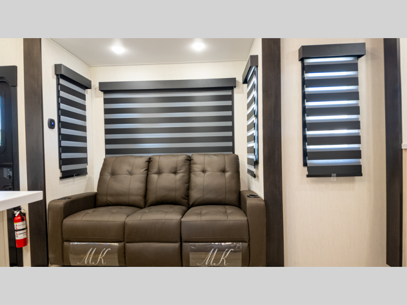 - Living: Triple slides, dual Euro recliners, theater seating, hidden pantry