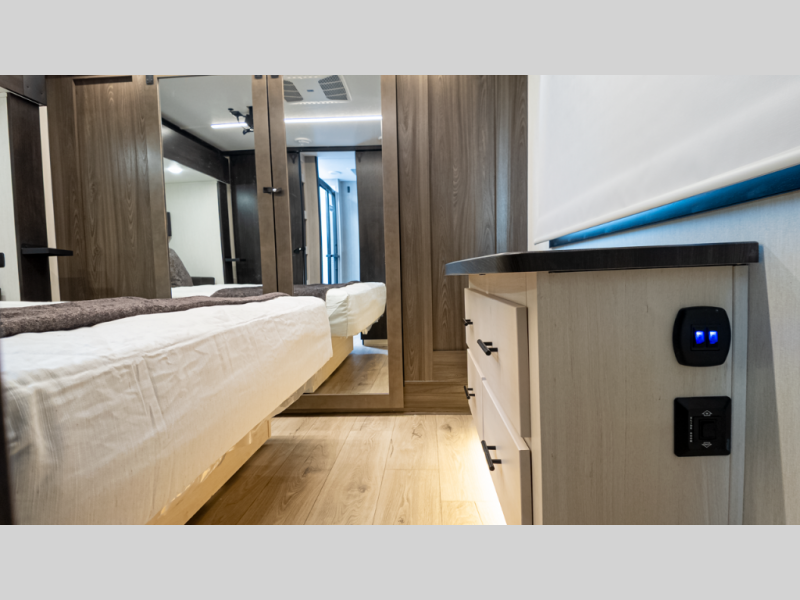 - Dual power awnings with LED and deluxe interior finishes blend rugged and luxury