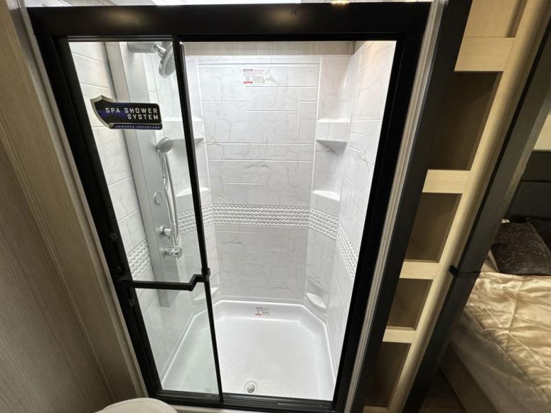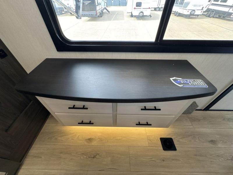 Every one of these Forest River Vengeance Rogue Armored fifth wheel toy haulers come with the features you want most at an affordable price tag! The DuraPoxy gas/oil resistant floor has 5,000 lb. tie downs to ensure your toys will arrive safely without damaging the flooring, plus the 3,000 lb. rated ramp door makes it easy to load them. Two 15,000 BTU A/Cs are "Super H Ducted" to keep you cool even on the hottest summer days, and the heated enclosed holding tanks help protect against the elements. Each model also includes a 6-point leveling system, dual LED cargo lights, solar reflective windows, and a tire pressure monitoring system. Inside, you'll enjoy the solid surface countertops, glass shower door, zebra shades in the living room, and stainless-steel multi-purpose sink to name a few comforts!