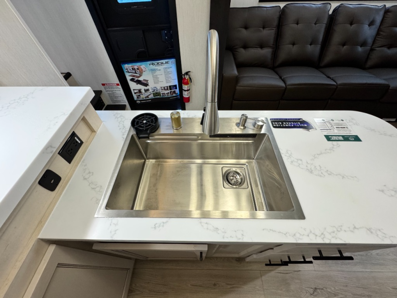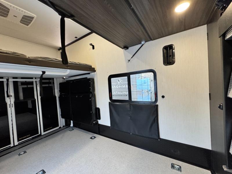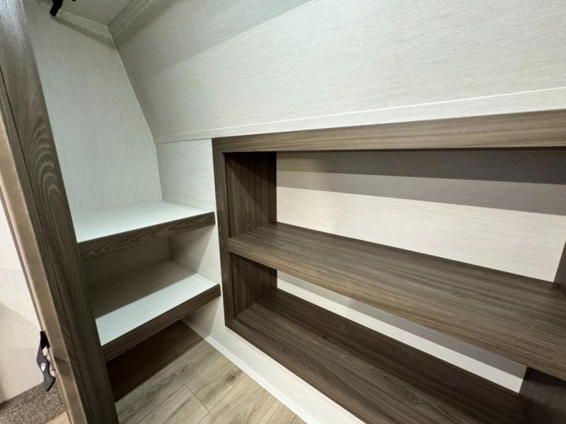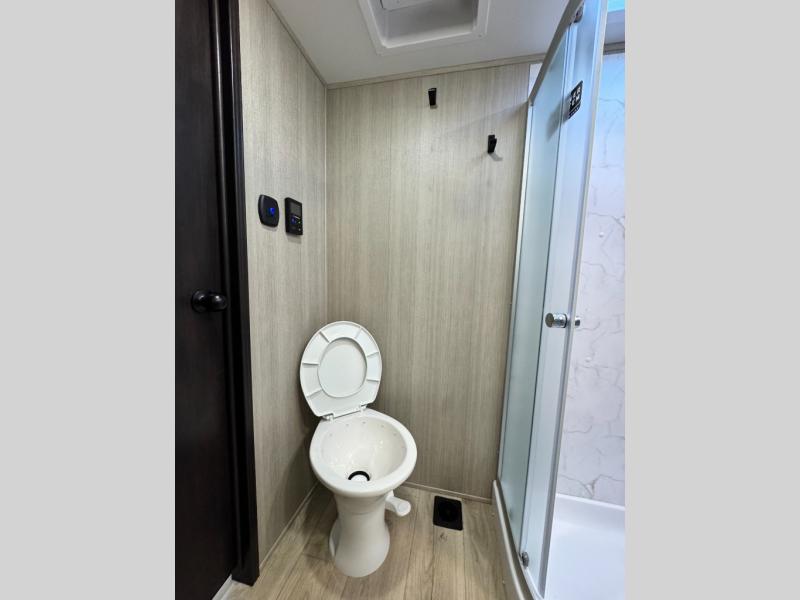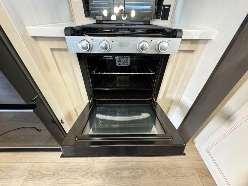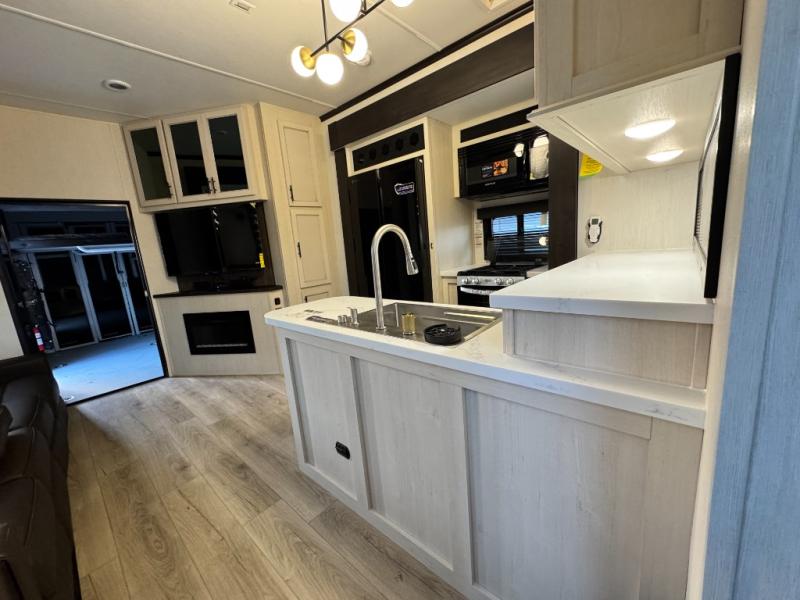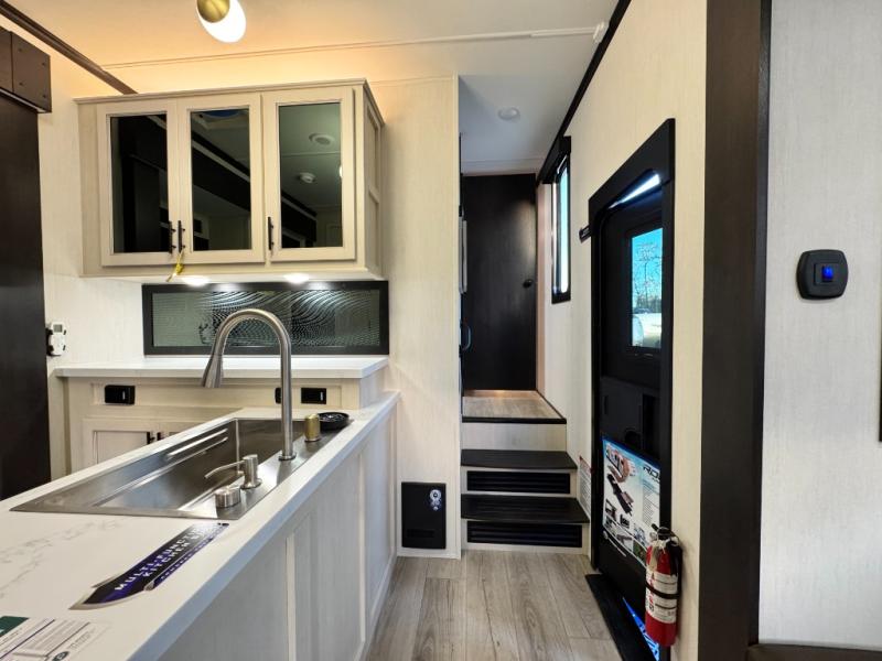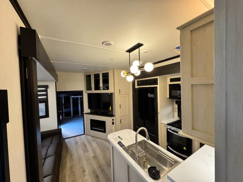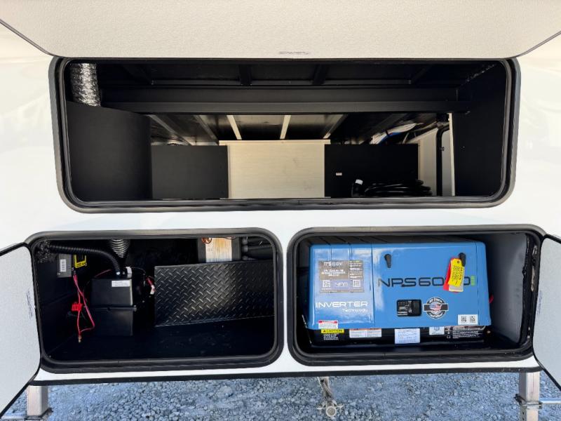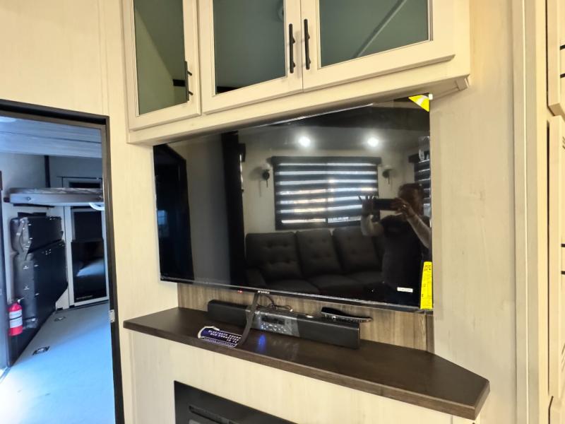 This 44-foot beast is built for serious off-road enthusiasts. It features a massive 13-foot separate garage (perfect for large Side-by-Sides or multiple motorcycles) with a heavy-duty ramp door patio system. The "Armored" package ensures durability with laminated sidewalls and a 102" wide-body construction. Inside, you'll find a King Bed suite, a loft for extra sleeping, 1.5 baths, and a chef’s kitchen with a residential 17 cu. ft. refrigerator. Plus, with a 6000 Watt Generator and 30-gallon fuel station, you are ready for extended dry camping trips.