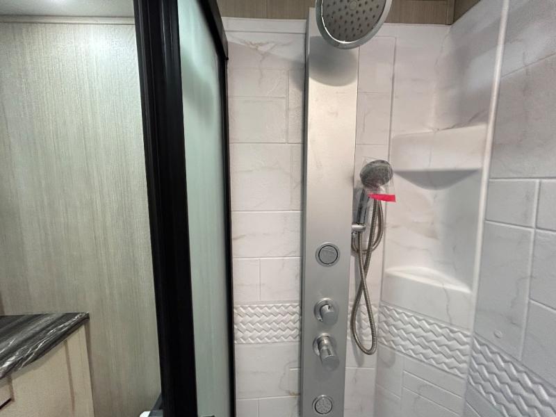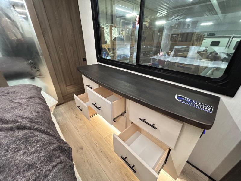 Every one of these Forest River Vengeance Rogue Armored fifth wheel toy haulers come with the features you want most at an affordable price tag! The DuraPoxy gas/oil resistant floor has 5,000 lb. tie downs to ensure your toys will arrive safely without damaging the flooring, plus the 3,000 lb. rated ramp door makes it easy to load them. Two 15,000 BTU A/Cs are "Super H Ducted" to keep you cool even on the hottest summer days, and an Armored underbelly helps keep your unit's vitals protected. The Rogue Ready package comes with a six point leveling system, a power MAXX storage system, a TST tire pressure monitoring system, and many more stand-out features. And don't overlook the Rogue Premium Package with an 8' weatherproof ramp door, an exterior TV hookup for the option to add a television, blue accent wheels, and solar reflective safety glass windows to name a few conveniences.