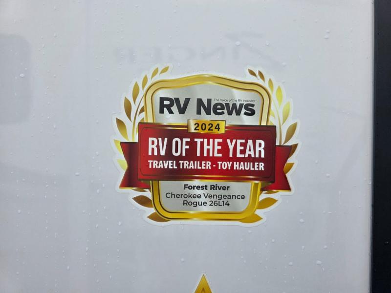 Every one of these Forest River Vengeance Rogue Armored fifth wheel toy haulers come with the features you want most at an affordable price tag! The DuraPoxy gas/oil resistant floor has 5,000 lb. tie downs to ensure your toys will arrive safely without damaging the flooring, plus the 3,000 lb. rated ramp door makes it easy to load them. Two 15,000 BTU A/Cs are "Super H Ducted" to keep you cool even on the hottest summer days, and an Armored underbelly helps keep your unit's vitals protected. The Rogue Ready package comes with a six point leveling system, a power MAXX storage system, a TST tire pressure monitoring system, and many more stand-out features. And don't overlook the Rogue Premium Package with an 8' weatherproof ramp door, an exterior TV hookup for the option to add a television, blue accent wheels, and solar reflective safety glass windows to name a few conveniences.