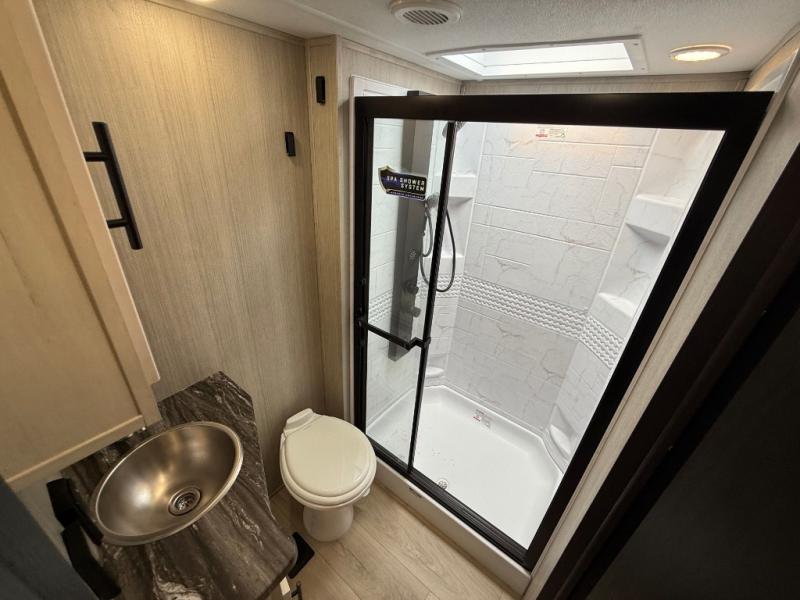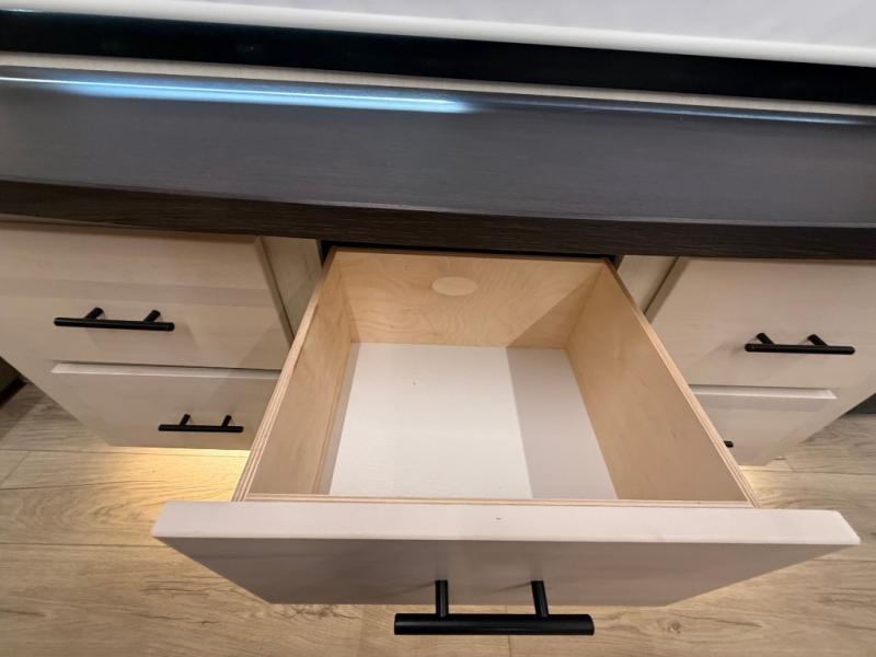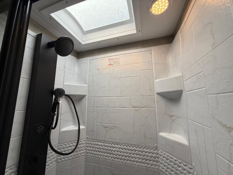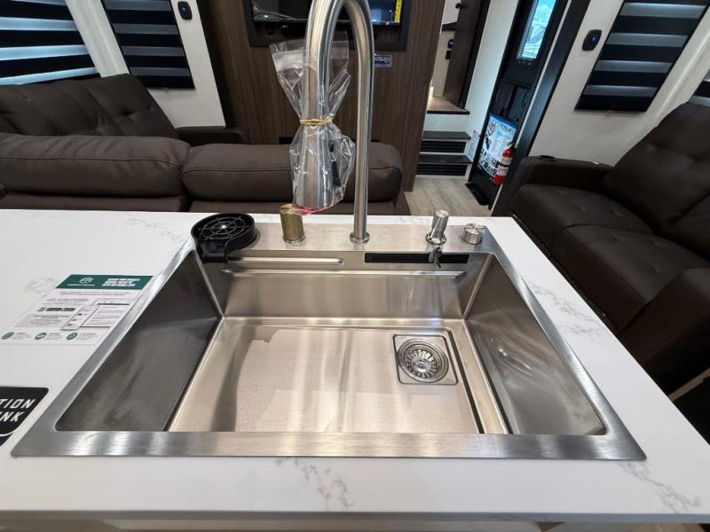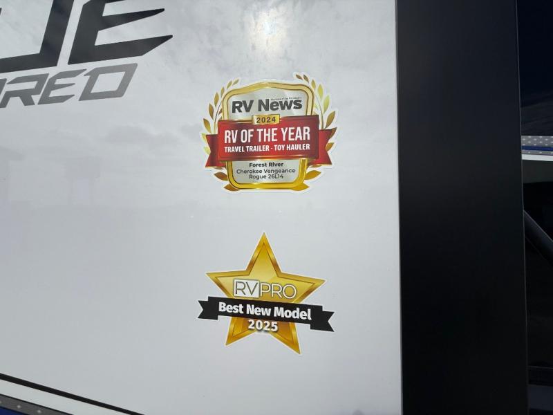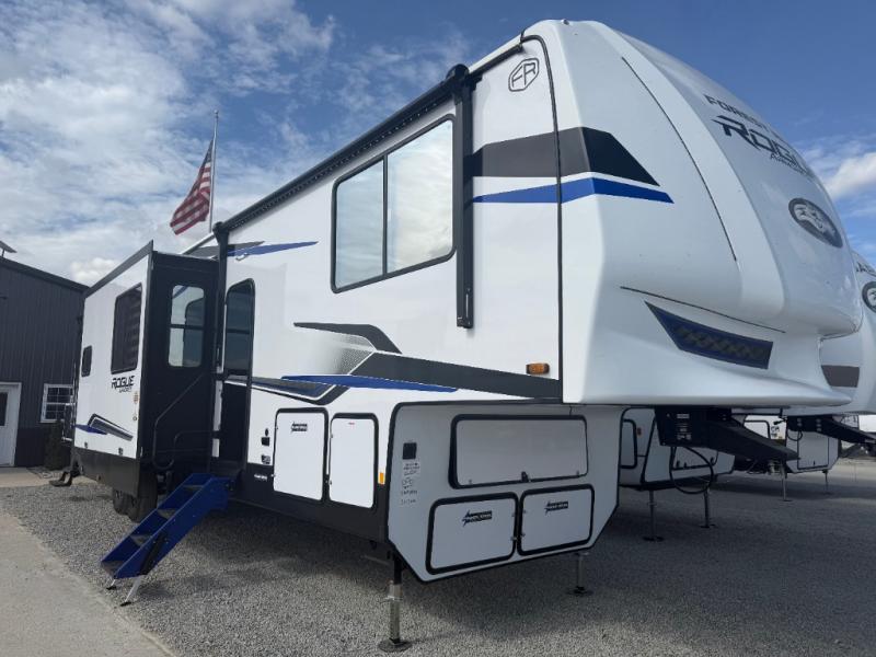 Every one of these Forest River Vengeance Rogue Armored fifth wheel toy haulers come with the features you want most at an affordable price tag! The DuraPoxy gas/oil resistant floor has 5,000 lb. tie downs to ensure your toys will arrive safely without damaging the flooring, plus the 3,000 lb. rated ramp door makes it easy to load them. Two 15,000 BTU A/Cs are "Super H Ducted" to keep you cool even on the hottest summer days, and the heated enclosed holding tanks help protect against the elements. Each model also includes a 6-point leveling system, dual LED cargo lights, solar reflective windows, and a tire pressure monitoring system. Inside, you'll enjoy the solid surface countertops, glass shower door, zebra shades in the living room, and stainless-steel multi-purpose sink to name a few comforts!