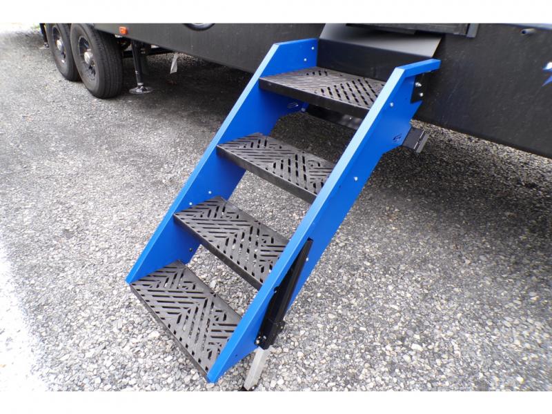 Every one of these Forest River Vengeance Rogue Armored fifth wheel toy haulers come with the features you want most at an affordable price tag! The DuraPoxy gas/oil resistant floor has 5,000 lb. tie downs to ensure your toys will arrive safely without damaging the flooring, plus the 3,000 lb. rated ramp door makes it easy to load them. Two 15,000 BTU A/Cs are "Super H Ducted" to keep you cool even on the hottest summer days, and the heated enclosed holding tanks help protect against the elements. Each model also includes a 6-point leveling system, dual LED cargo lights, solar reflective windows, and a tire pressure monitoring system. Inside, you'll enjoy the solid surface countertops, glass shower door, zebra shades in the living room, and stainless-steel multi-purpose sink to name a few comforts!