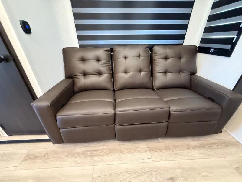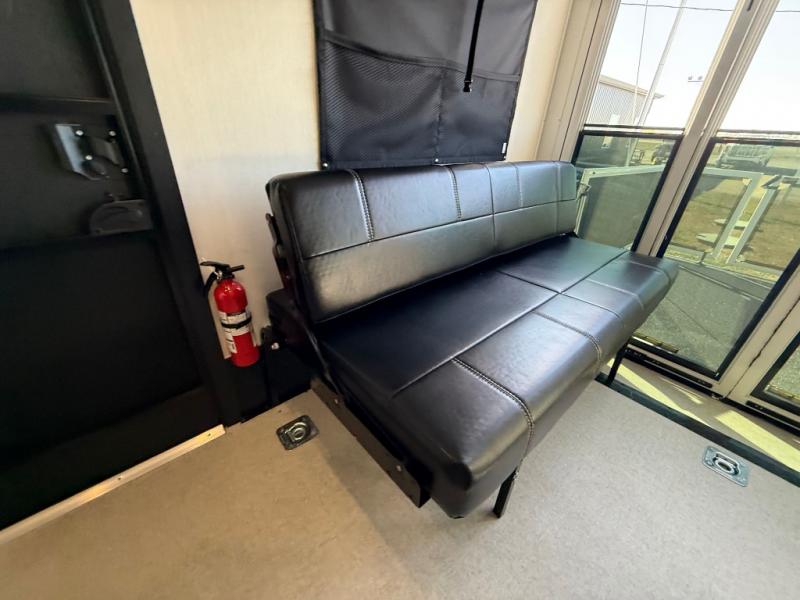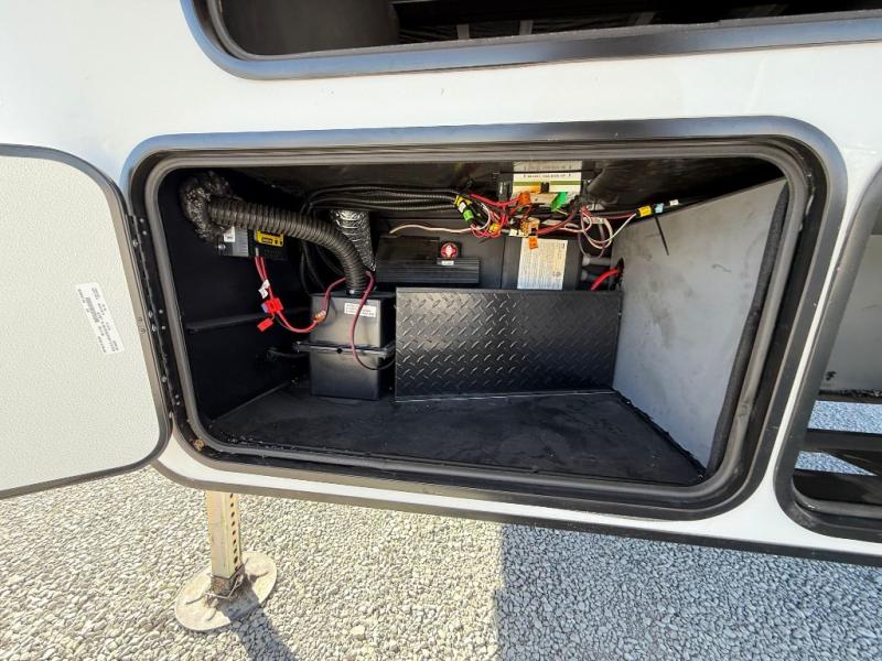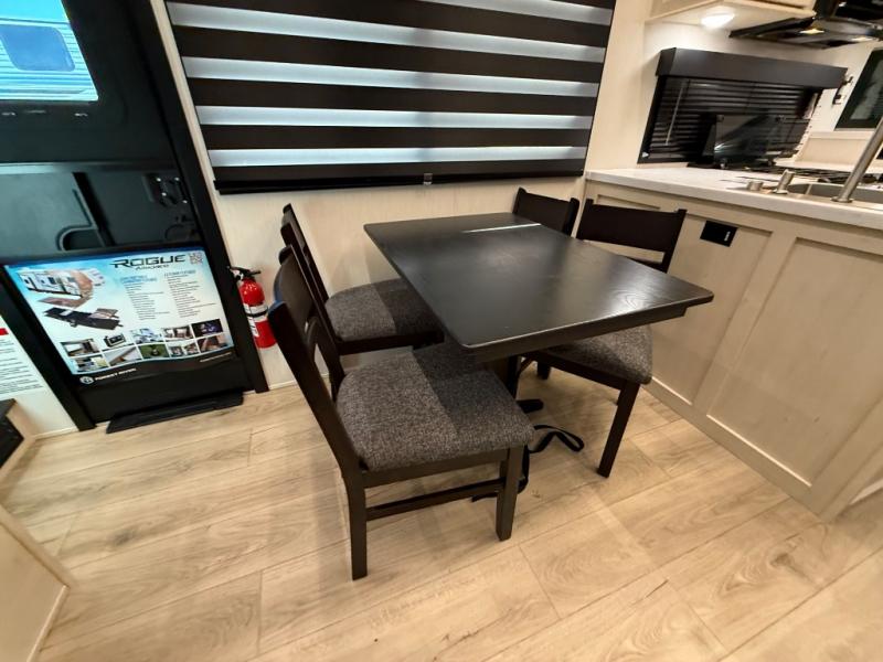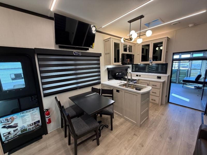 Every one of these Forest River Vengeance Rogue Armored fifth wheel toy haulers come with the features you want most at an affordable price tag! The DuraPoxy gas/oil resistant floor has 5,000 lb. tie downs to ensure your toys will arrive safely without damaging the flooring, plus the 3,000 lb. rated ramp door makes it easy to load them. Two 15,000 BTU A/Cs are "Super H Ducted" to keep you cool even on the hottest summer days, and the heated enclosed holding tanks help protect against the elements. Each model also includes a 6-point leveling system, dual LED cargo lights, solar reflective windows, and a tire pressure monitoring system. Inside, you'll enjoy the solid surface countertops, glass shower door, zebra shades in the living room, and stainless-steel multi-purpose sink to name a few comforts!