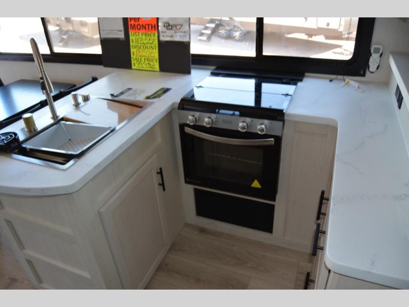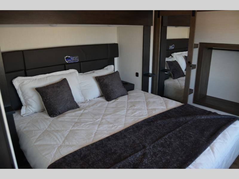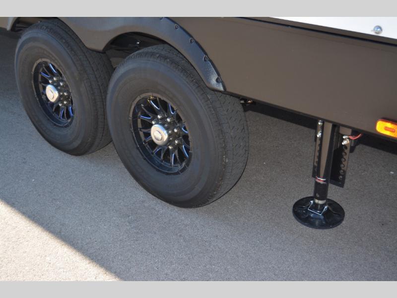 Every one of these Forest River Vengeance Rogue Armored fifth wheel toy haulers come with the features you want most at an affordable price tag! The DuraPoxy gas/oil resistant floor has 5,000 lb. tie downs to ensure your toys will arrive safely without damaging the flooring, plus the 3,000 lb. rated ramp door makes it easy to load them. Two 15,000 BTU A/Cs are "Super H Ducted" to keep you cool even on the hottest summer days, and the heated enclosed holding tanks help protect against the elements. Each model also includes a 6-point leveling system, dual LED cargo lights, solar reflective windows, and a tire pressure monitoring system. Inside, you'll enjoy the solid surface countertops, glass shower door, zebra shades in the living room, and stainless-steel multi-purpose sink to name a few comforts!