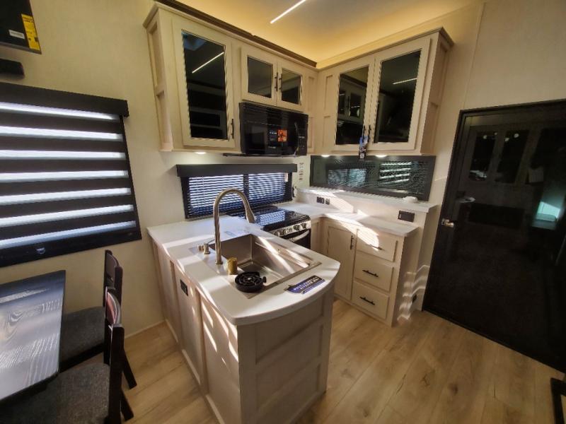 Every one of these Forest River Vengeance Rogue Armored fifth wheel toy haulers come with the features you want most at an affordable price tag! The DuraPoxy gas/oil resistant floor has 5,000 lb. tie downs to ensure your toys will arrive safely without damaging the flooring, plus the 3,000 lb. rated ramp door makes it easy to load them. Two 15,000 BTU A/Cs are "Super H Ducted" to keep you cool even on the hottest summer days, and the heated enclosed holding tanks help protect against the elements. Each model also includes a 6-point leveling system, dual LED cargo lights, solar reflective windows, and a tire pressure monitoring system. Inside, you'll enjoy the solid surface countertops, glass shower door, zebra shades in the living room, and stainless-steel multi-purpose sink to name a few comforts!