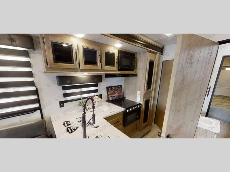 With any Vengeance Rouge SUT toy hauler travel trailer or fifth wheel by Forest River you can bring along your favorite ride-on toys, while still enjoying at-home comforts. Each one is built with a seamless roofing membrane with heat reflectivity and an armored underbelly tank enclosure for added strength and durability, and the 8' 6" wide body construction means you can bring along your favorite ride-on toys. Inside, you'll find a 1000 watt microwave and a three burner cooktop with an oven, seamless countertops, plus zebra shades that filters light and are blackout capable. These toy haulers also include 12V heat pads on all the holding tanks, a 15,000 BTU A/C unit, and many more amenities to make camping easier than ever.