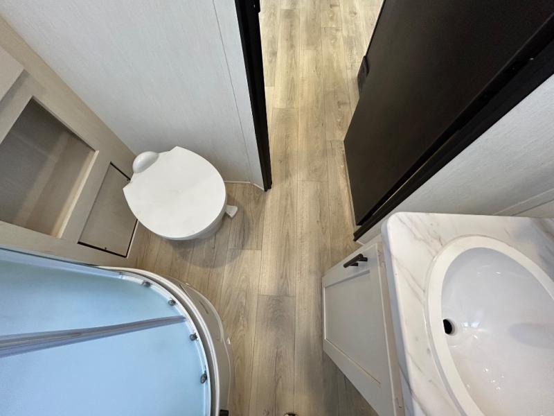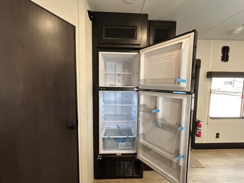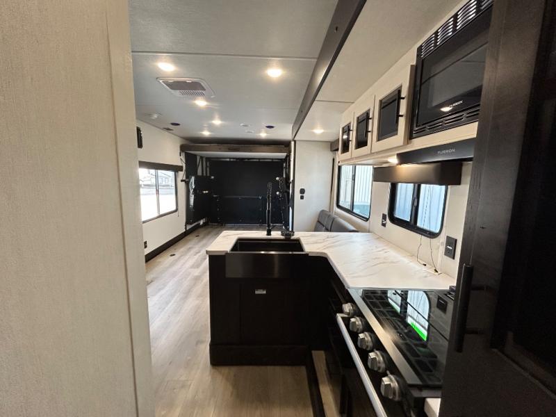 With any Vengeance Rouge SUT toy hauler travel trailer or fifth wheel by Forest River you can bring along your favorite ride-on toys, while still enjoying at-home comforts. Each one is built with a seamless roofing membrane with heat reflectivity and an armored underbelly tank enclosure for added strength and durability, and the 8' 6" wide body construction means you can bring along your favorite ride-on toys. Inside, you'll find a 1000 watt microwave and a three burner cooktop with an oven, seamless countertops, plus zebra shades that filters light and are blackout capable. These toy haulers also include 12V heat pads on all the holding tanks, a 15,000 BTU A/C unit, and many more amenities to make camping easier than ever.