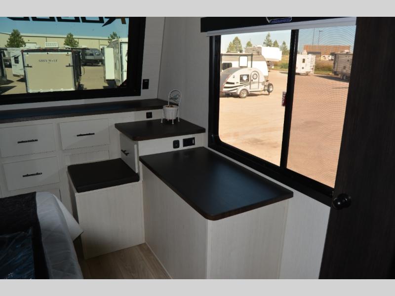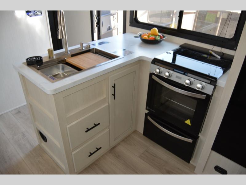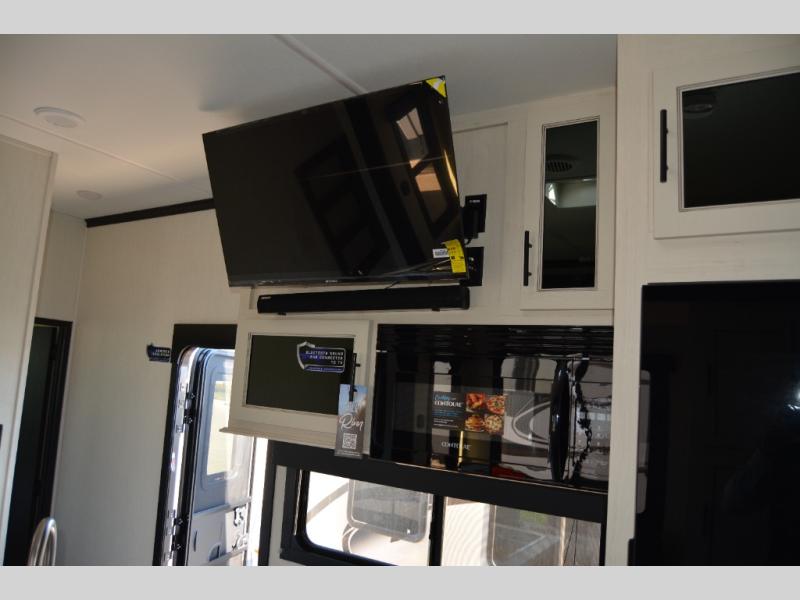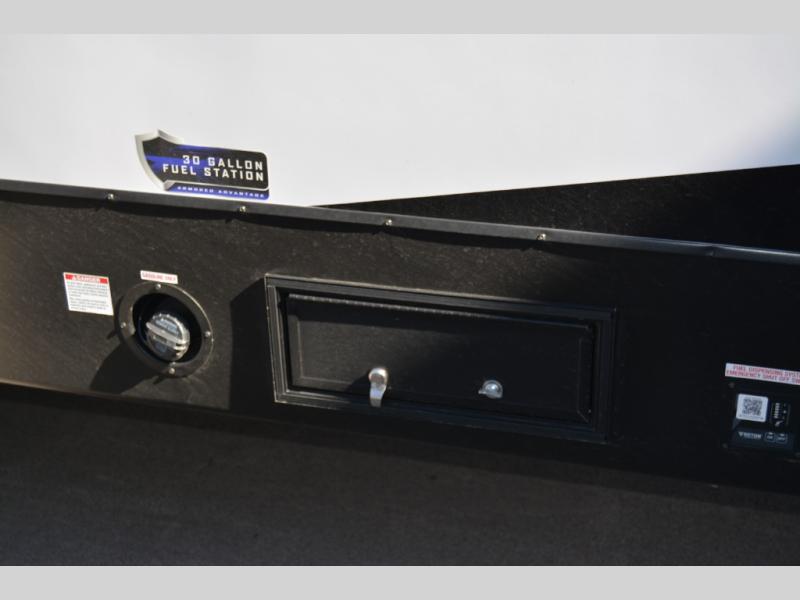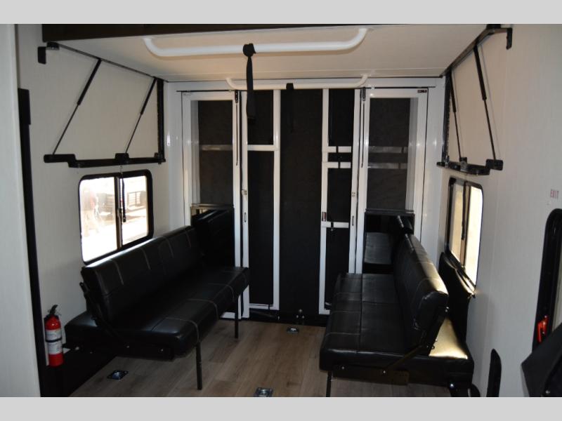 With any Vengeance Rouge SUT toy hauler travel trailer or fifth wheel by Forest River you can bring along your favorite ride-on toys, while still enjoying at-home comforts. Each one is built with a seamless roofing membrane with heat reflectivity and an armored underbelly tank enclosure for added strength and durability, and the 8' 6" wide body construction means you can bring along your favorite ride-on toys. Inside, you'll find a 1000 watt microwave and a three burner cooktop with an oven, seamless countertops, plus zebra shades that filters light and are blackout capable. These toy haulers also include 12V heat pads on all the holding tanks, a 15,000 BTU A/C unit, and many more amenities to make camping easier than ever.