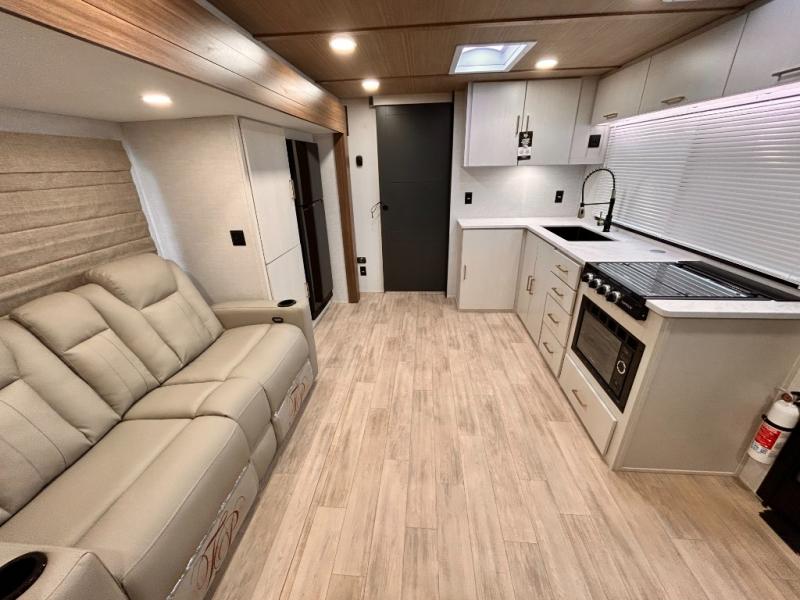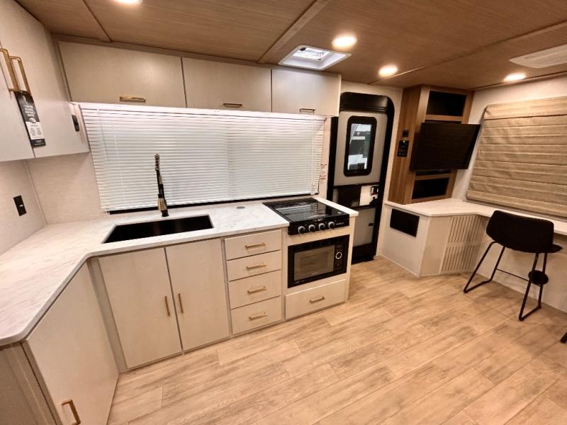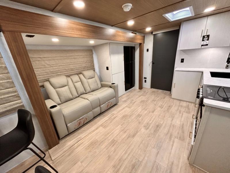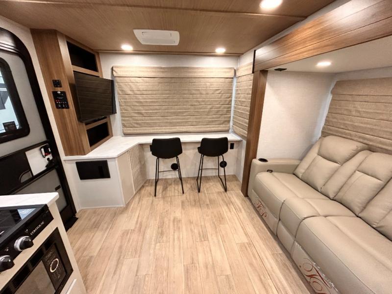 REAR LIVING/ THEATER SEATING/ 200 WATT ROOF MOUNTED SOLAR PACKAGE/ KING BED/ TWO AC!!