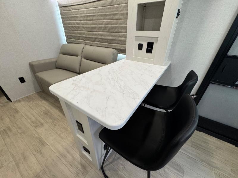 With any Vibe travel trailer by Forest River, you will enjoy comfort at every turn! There is a Norco huck-bolted steel frame, an enclosed underbelly with 12V heating pads, and a PVC roof membrane for added durability. You will also find a universal docking station outside, along with slam latch doors, and the largest square windows in its class. Inside, you'll find a 6' 8" ceiling height, an oversized residential-style sink, no carpet for easier cleaning, plus premium residential-style furniture for all around comfort. Each model is also prepped for a back-up camera, an On-The-Go ladder attachment, and solar power, allowing you to upgrade your travel trailer if you choose!