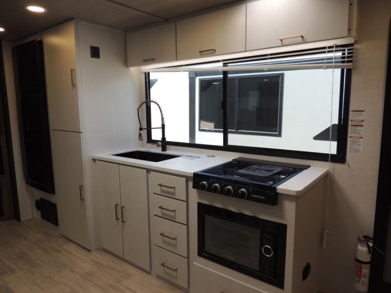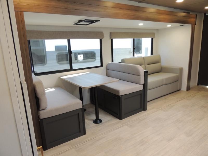 With any Vibe travel trailer by Forest River, you will enjoy comfort at every turn! There is a Norco huck-bolted steel frame, an enclosed underbelly with 12V heating pads, and a PVC roof membrane for added durability. You will also find a universal docking station outside, along with slam latch doors, and the largest square windows in its class. Inside, you'll find a 6' 8" ceiling height, an oversized residential-style sink, no carpet for easier cleaning, plus premium residential-style furniture for all around comfort. Each model is also prepped for a back-up camera, an On-The-Go ladder attachment, and solar power, allowing you to upgrade your travel trailer if you choose!