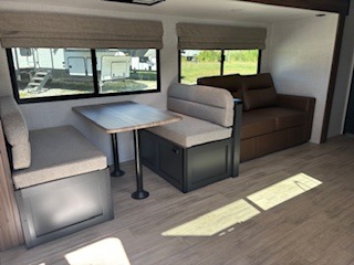 Are you looking to upgrade your RV to a trailer with more space and more features? Look no further than this Vibe! The kids are sure to claim the double-size bunks to themselves, while the adults take the front private bedroom with the queen bed. You will find even more sleeping space on the 5-person dinette and tri-fold sofa within the large slide out. After a day outdoors at the lake, get cleaned up in the full bath that includes a 40" x 30" shower.