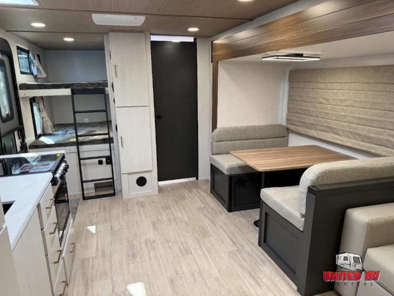 Are you looking to upgrade your RV to a trailer with more space and more features? Look no further than this Vibe! The kids are sure to claim the double-size bunks to themselves, while the adults take the front private bedroom with the queen bed. You will find even more sleeping space on the 5-person dinette and tri-fold sofa within the large slide out. After a day outdoors at the lake, get cleaned up in the full bath that includes a 40" x 30" shower.