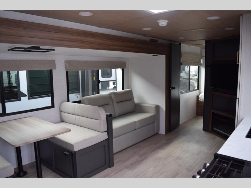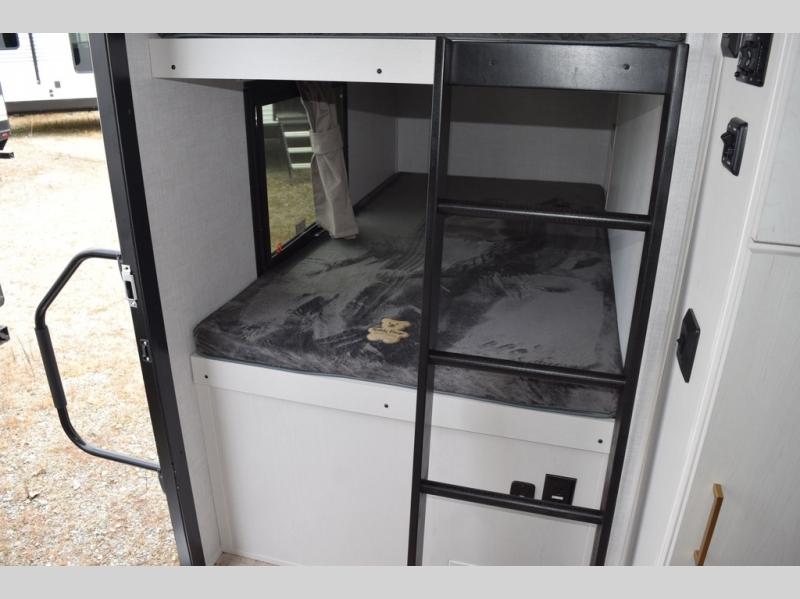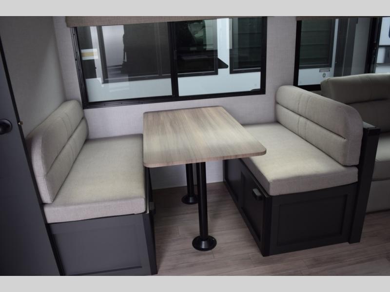 Are you looking to upgrade your RV to a trailer with more space and more features? Look no further than this Vibe! The kids are sure to claim the double-size bunks to themselves, while the adults take the front private bedroom with the queen bed. You will find even more sleeping space on the 5-person dinette and tri-fold sofa within the large slide out. After a day outdoors at the lake, get cleaned up in the full bath that includes a 40" x 30" shower.
