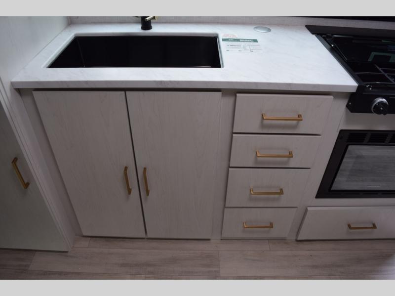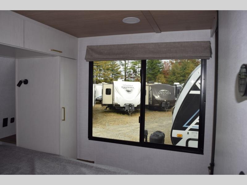 With any Vibe travel trailer by Forest River, you will enjoy comfort at every turn! There is a Norco huck-bolted steel frame, an enclosed underbelly with 12V heating pads, and a PVC roof membrane for added durability. You will also find a universal docking station outside, along with slam latch doors, European style square windows, and an automotive painted front cap. Head inside to enjoy the premium residential-style furniture, decorative window treatments, privacy shades in the living room and bedroom, and many more comforts!