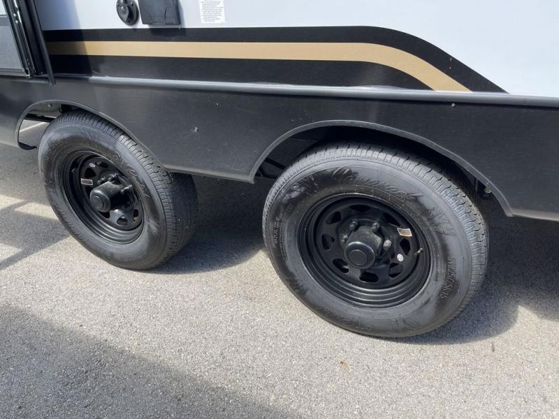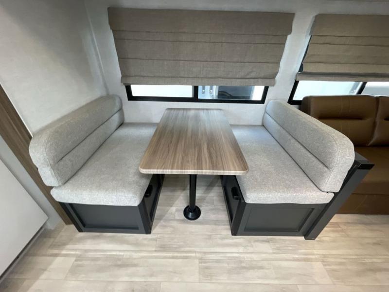 Are you looking to upgrade your RV to a trailer with more space and more features? Look no further than this Vibe! The kids are sure to claim the double-size bunks to themselves, while the adults take the front private bedroom with the queen bed. You will find even more sleeping space on the 5-person dinette and tri-fold sofa within the large slide out. After a day outdoors at the lake, get cleaned up in the full bath that includes a 40" x 30" shower.
