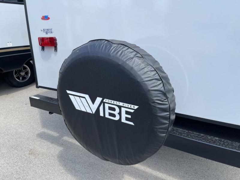 With any Vibe travel trailer by Forest River, you will enjoy comfort at every turn! There is a Norco huck-bolted steel frame, an enclosed underbelly with 12V heating pads, and a PVC roof membrane for added durability. You will also find a universal docking station outside, along with slam latch doors, European style square windows, and an automotive painted front cap. Head inside to enjoy the premium residential-style furniture, decorative window treatments, privacy shades in the living room and bedroom, and many more comforts!