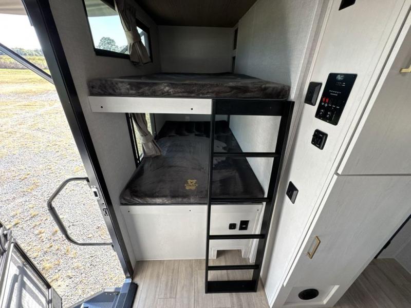 Are you looking to upgrade your RV to a trailer with more space and more features? Look no further than this Vibe! The kids are sure to claim the double-size bunks to themselves, while the adults take the front private bedroom with the queen bed. You will find even more sleeping space on the 5-person dinette and tri-fold sofa within the large slide out. After a day outdoors at the lake, get cleaned up in the full bath that includes a 40" x 30" shower.