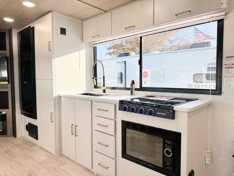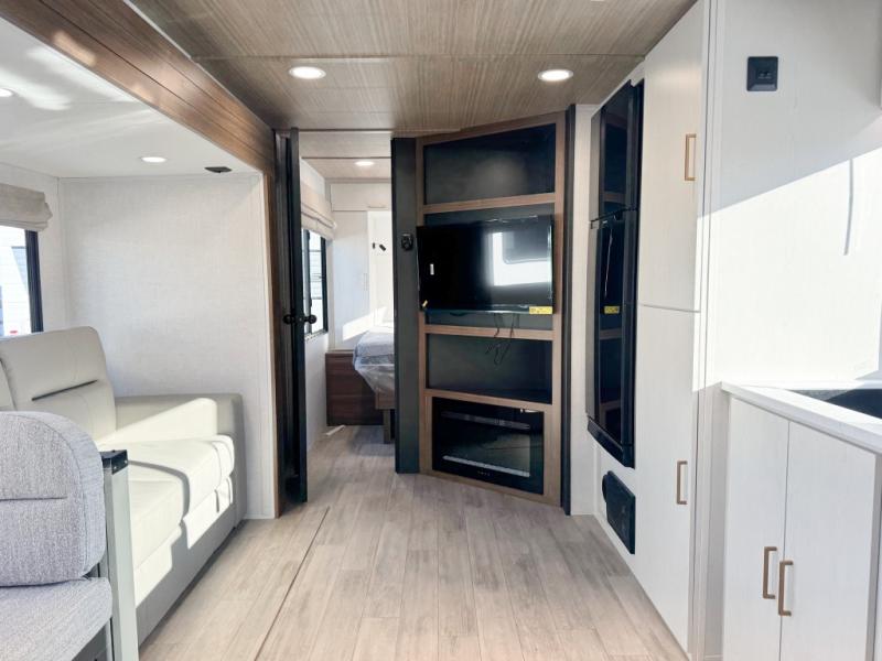 With any Vibe travel trailer by Forest River, you will enjoy comfort at every turn! There is a Norco huck-bolted steel frame, an enclosed underbelly with 12V heating pads, and a PVC roof membrane for added durability. You will also find a universal docking station outside, along with slam latch doors, European style square windows, and an automotive painted front cap. Head inside to enjoy the premium residential-style furniture, decorative window treatments, privacy shades in the living room and bedroom, and many more comforts!